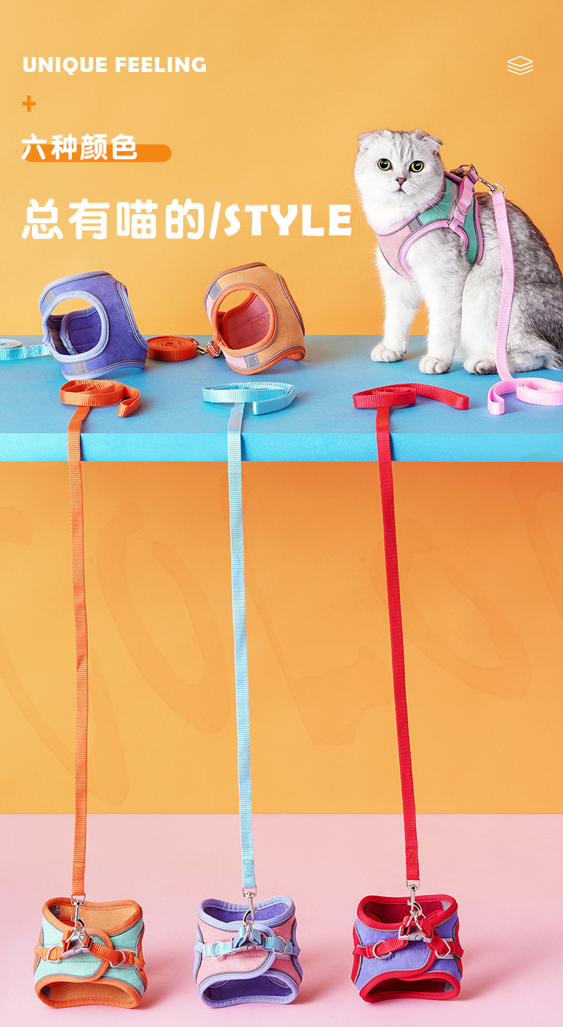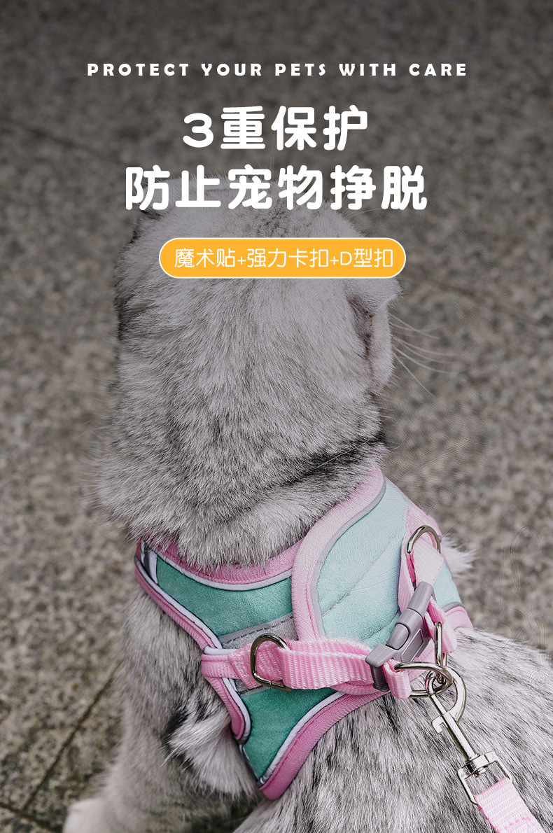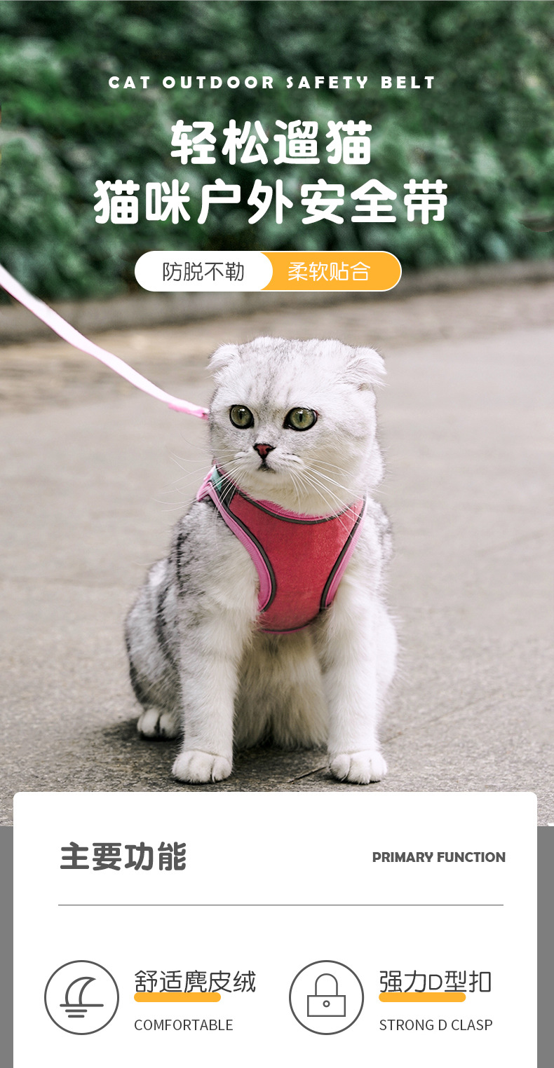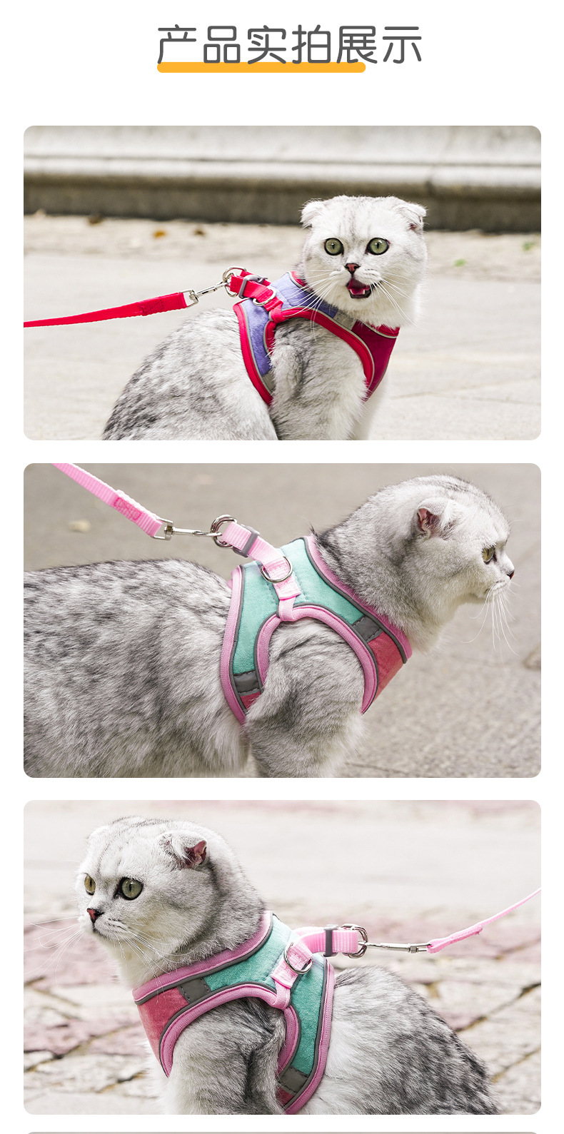 【宠物牵引绳】宠物狗猫牵引绳遛狗套装宠物麂皮猫咪胸背带发夜光牵引带
