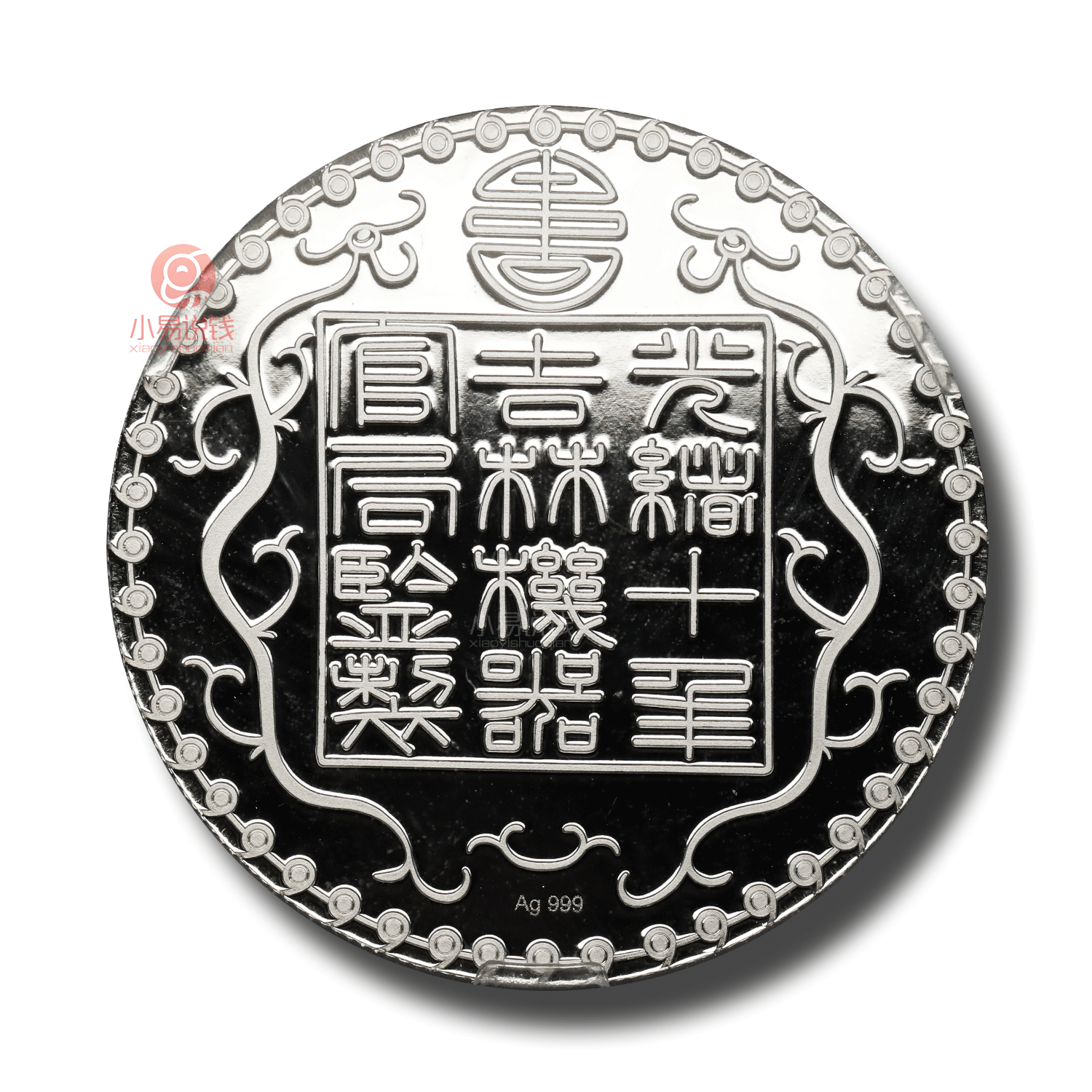 这枚吉林厂平壹两银章,以为慈禧太后五十大寿特意制造的厂平壹两银元为原型,含Ag999足银10克,寓意极佳!