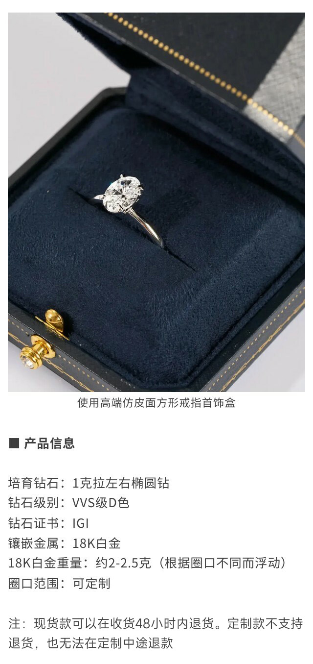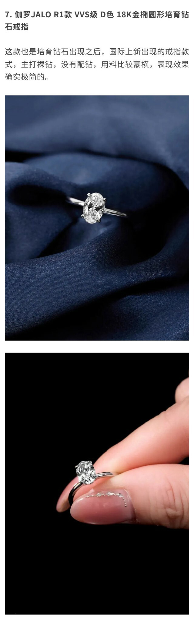 伽罗JALO R1款 VVS级 D色18K金椭圆形培育钻石戒指