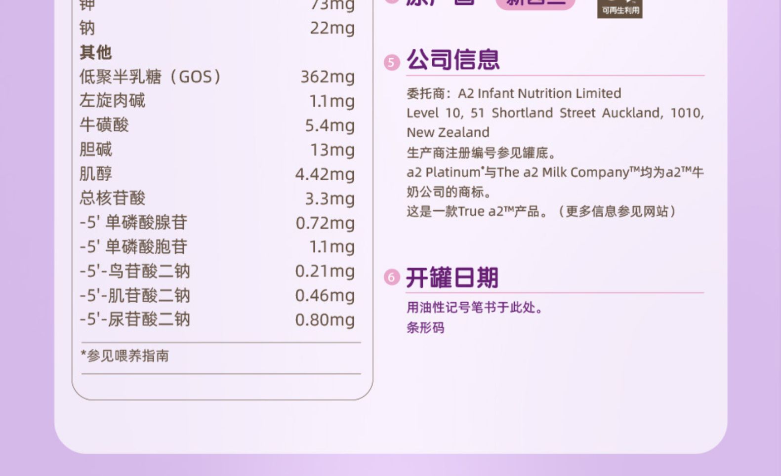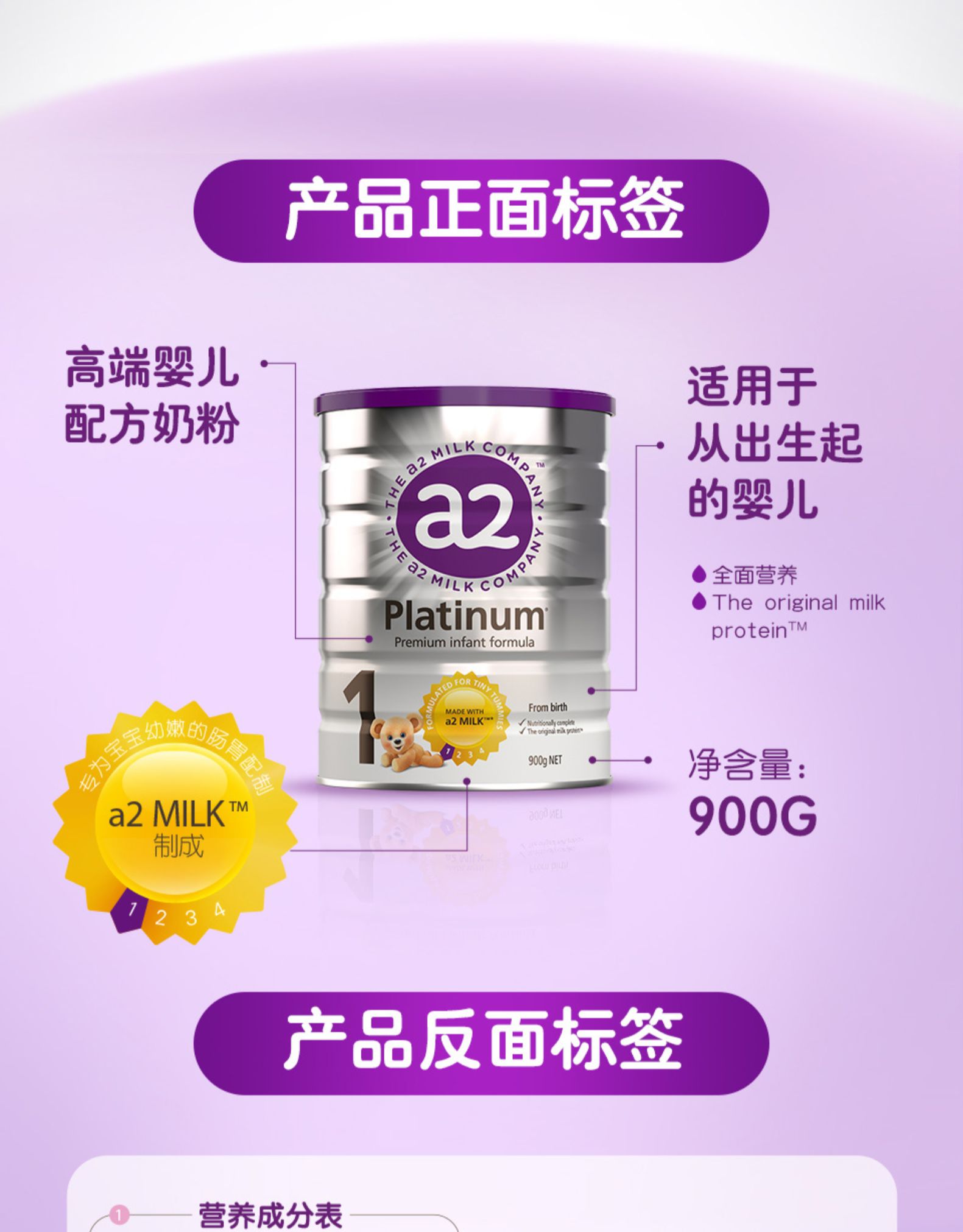新西兰a2进口奶粉1段900g