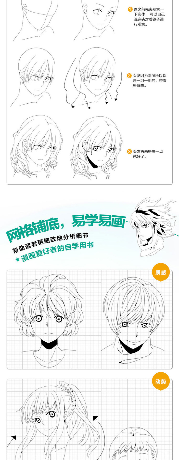 本书是“动漫专项练习册”系列中的头部与发型篇,本书共分为发型基础、头发质感的体现、集聚动感的头发、女士千奇百怪的发型、男士千奇百怪的发型、类人生物发型综合六个部分,集中讲解了囊括绝大多数发型的绘制技巧。本系列书采用少文字多图例的方法,案例图都用轻网格铺底的设计版式,帮助读者更细致的分析画面。