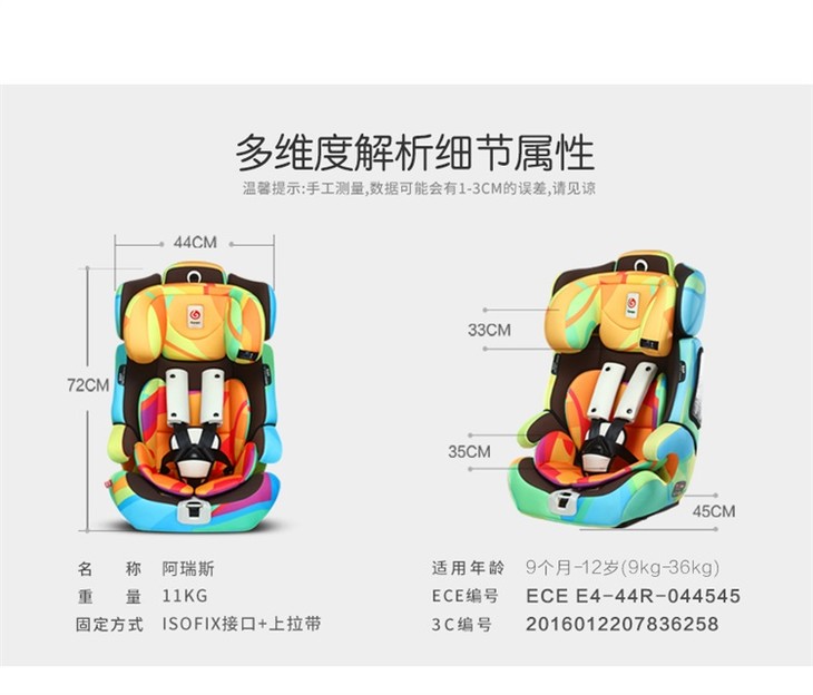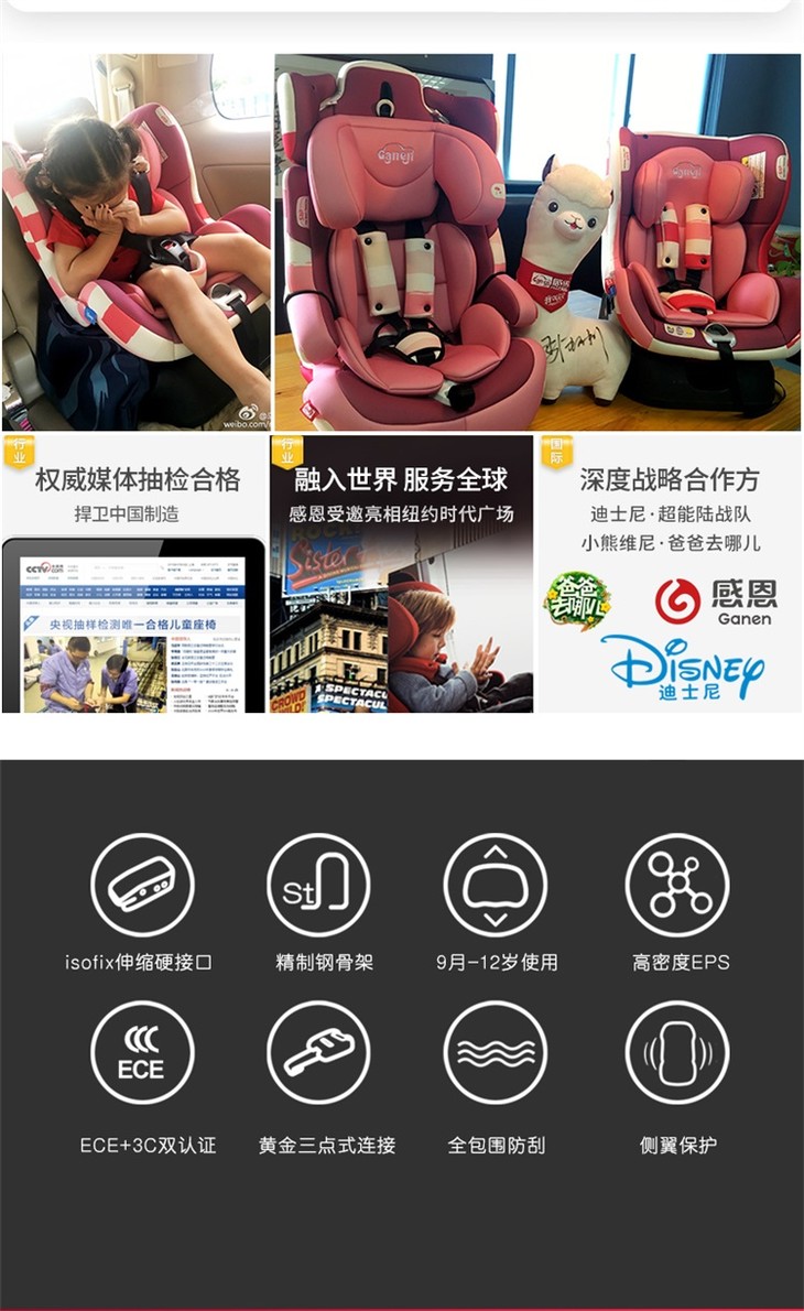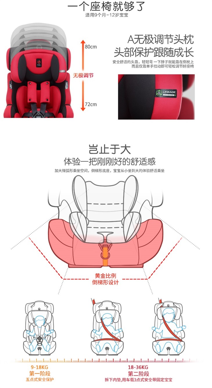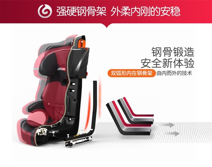 感恩儿童安全座椅 阿瑞斯 钢架结构 isofix接口 正向安装 四档调节肩带