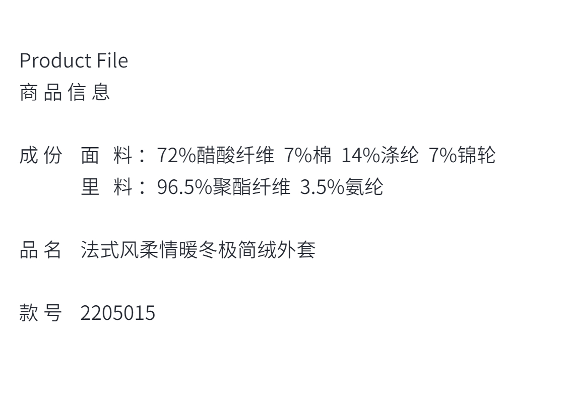 定制—收藏级—法式风、柔情暖冬、奢华极简绒单排短外套 2205015