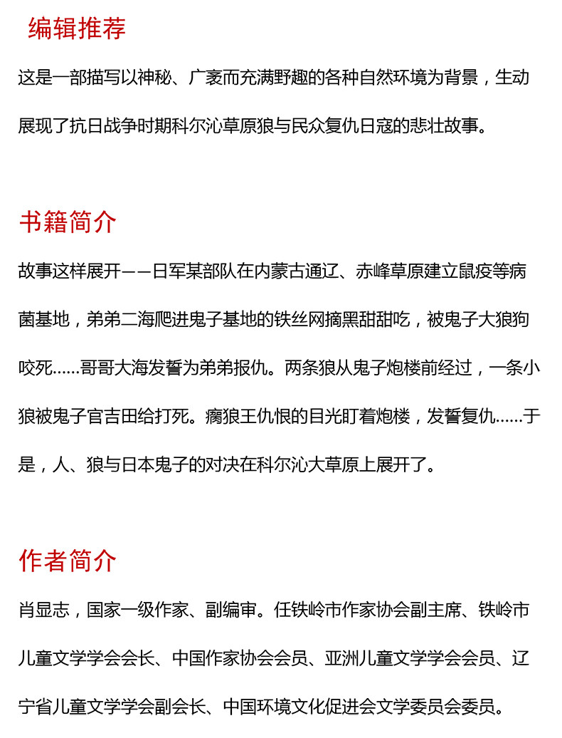 狼王的复仇 名家动物小说精品 肖显志 陈伯吹儿童文学奖