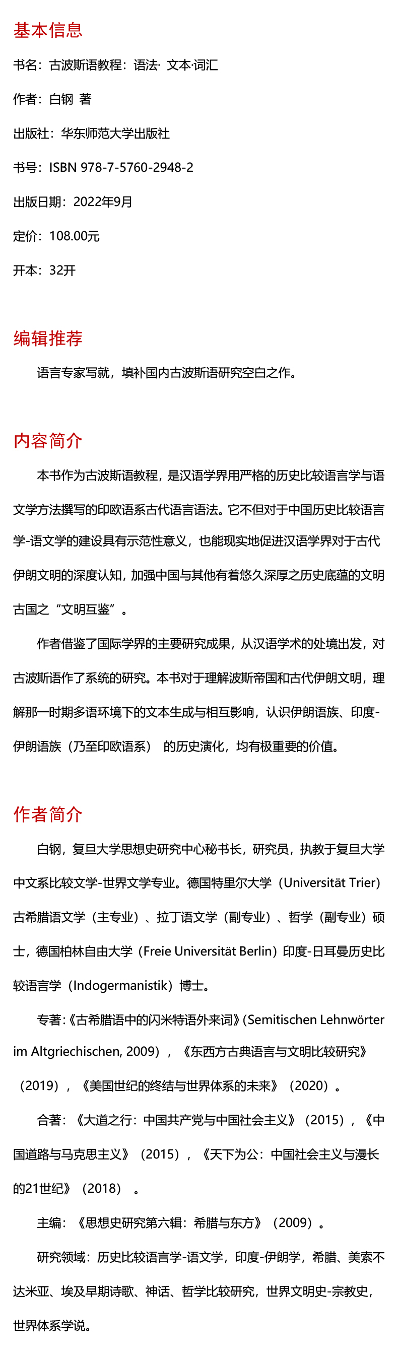 古波斯语教程 语法 文本 词汇 复旦语言专家白钢教授原创古波斯语系统教程 精装