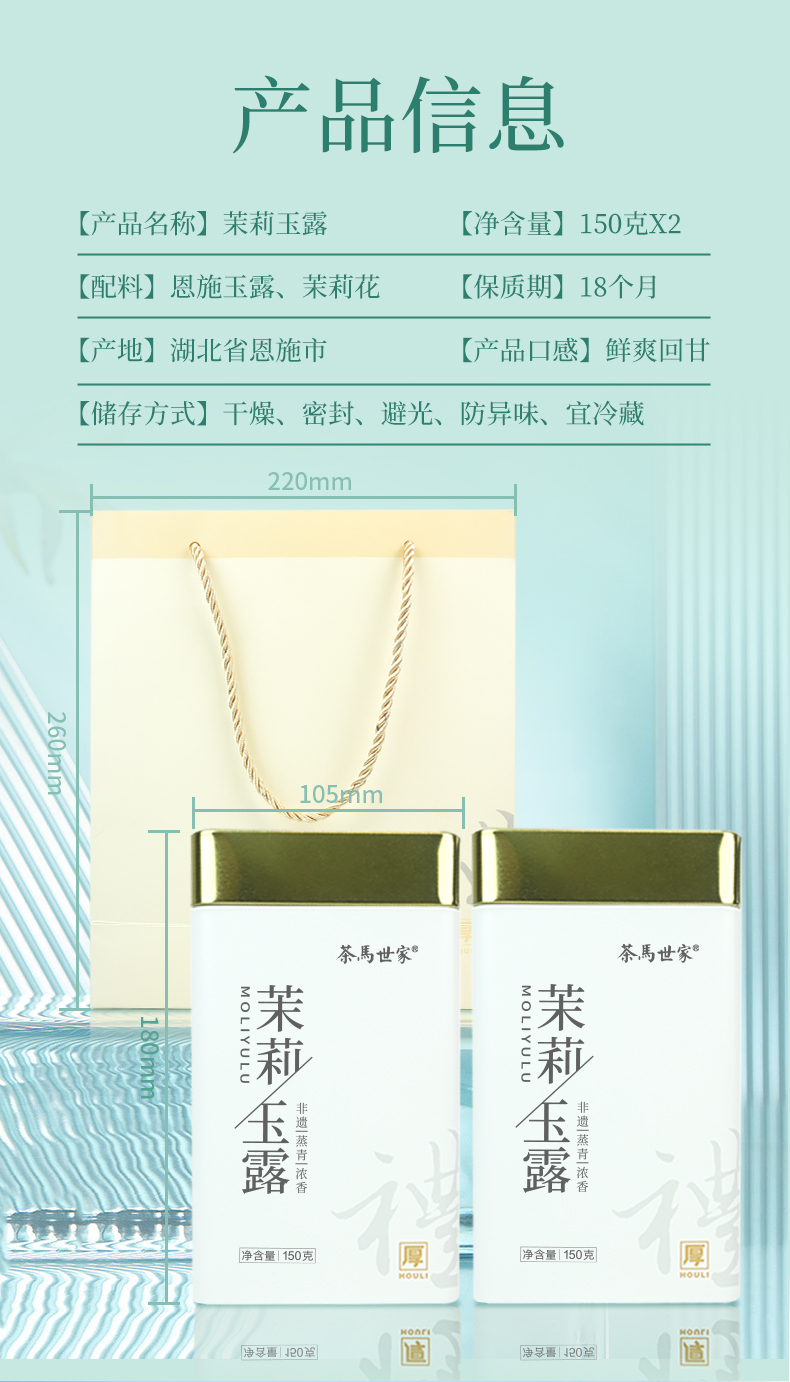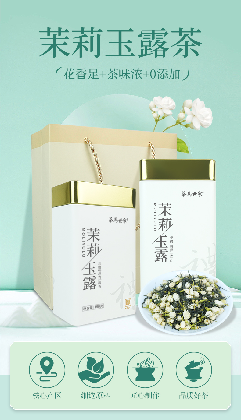 【茉莉玉露】茶马世家丨明前茉莉玉露 茉莉花茶 150g*2罐 送手提袋 横县茉莉花搭配湖北恩施玉露