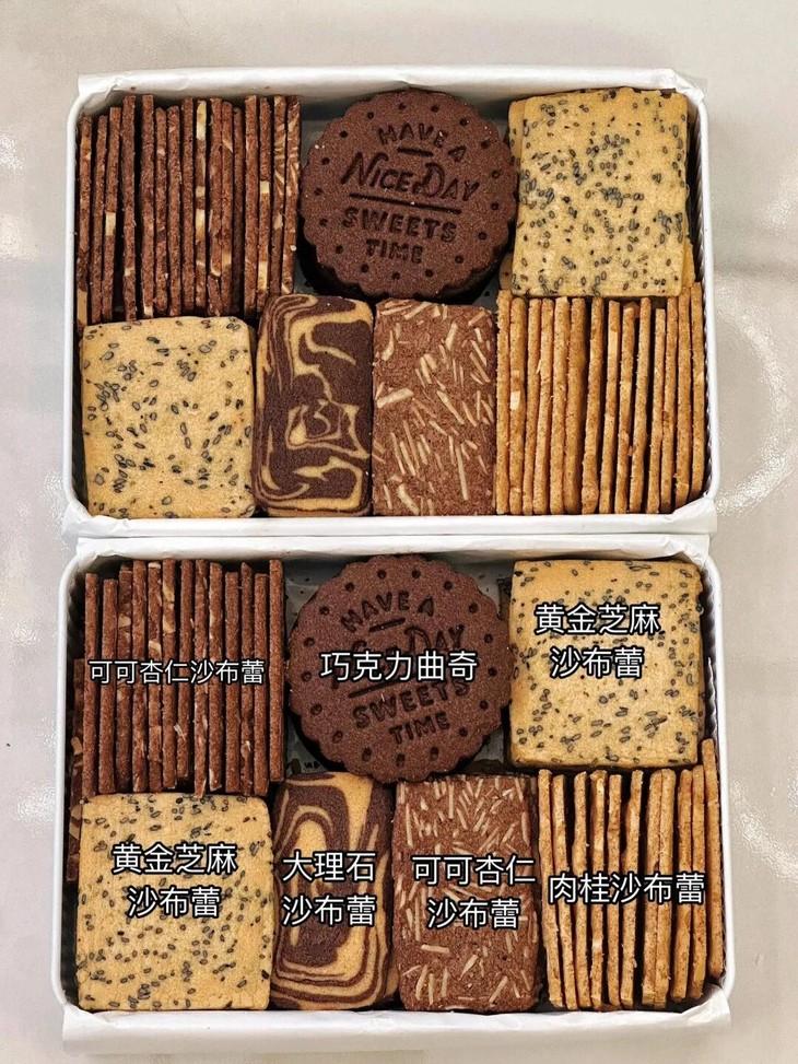 巧克力可可、可可杏仁沙布蕾、杏仁肉桂沙布蕾、黄金芝麻沙布蕾、大理石沙布蕾。