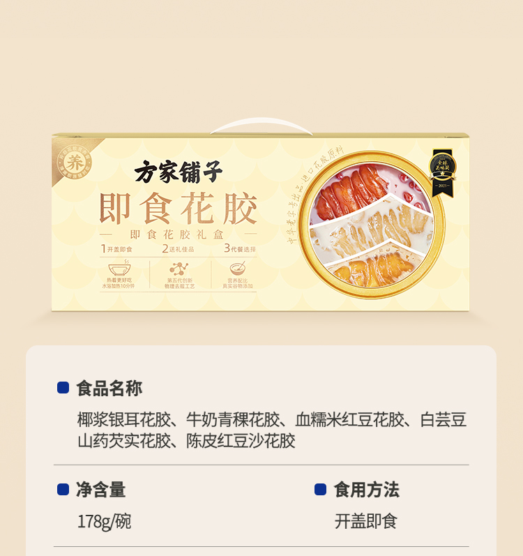 方家铺子 即食花胶178gx6(椰浆2青稞2血糯米2)/礼盒装
