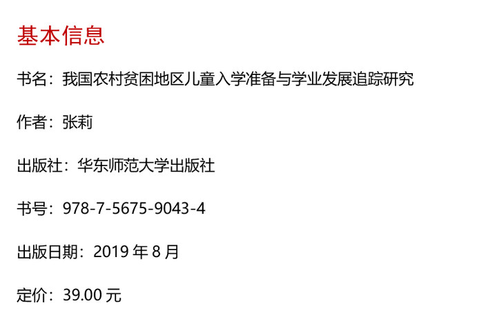 我国农村贫困地区儿童入学准备与学业发展追踪研究 聚焦中国学前教育 学前儿童发展与教育高瞻丛书第二辑 正版 华东师范大学出版社
