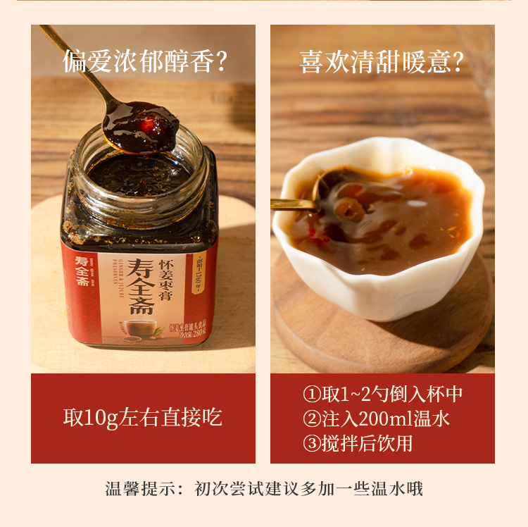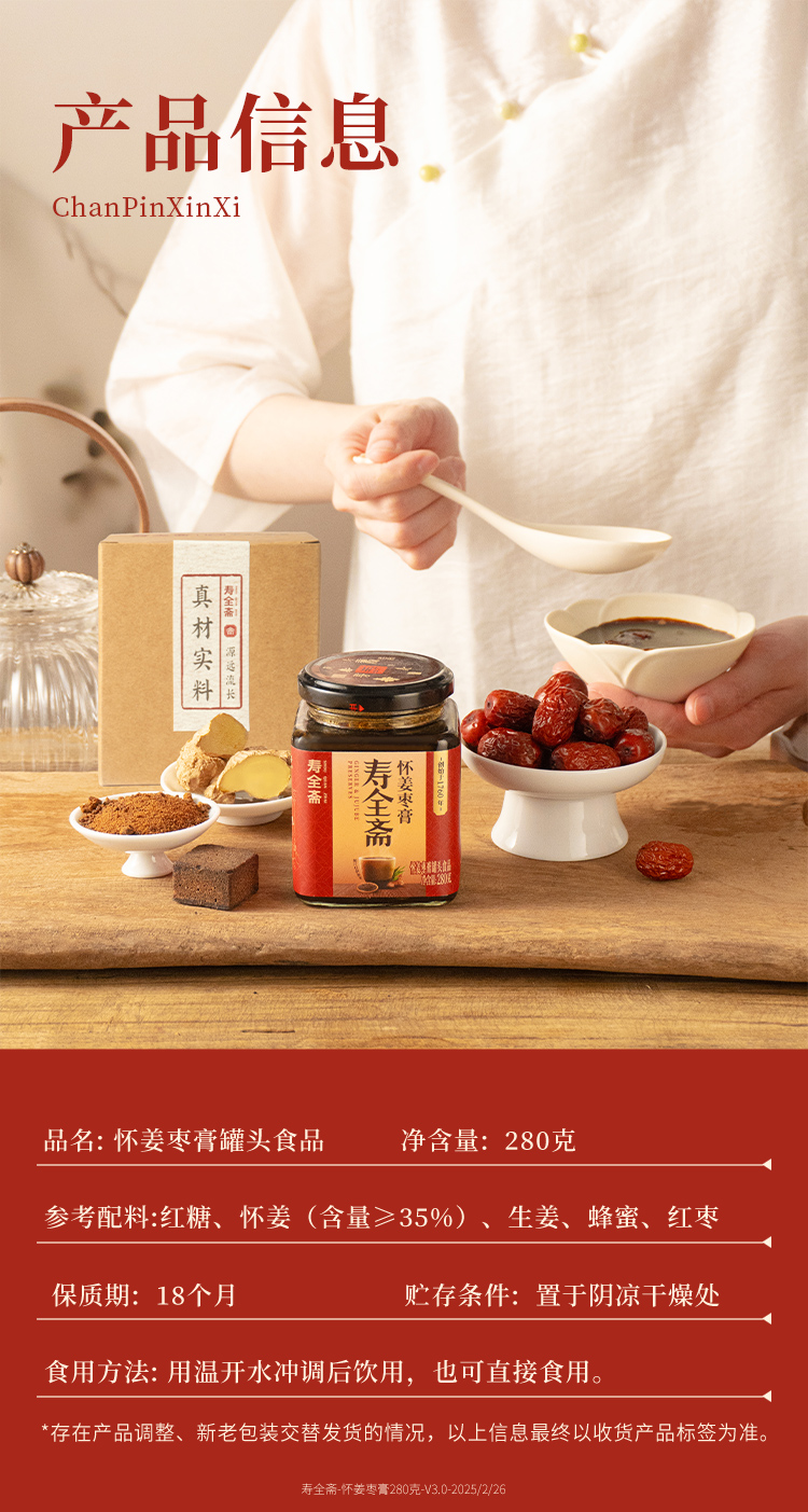 【寿全斋】怀姜枣膏红糖小黄姜怀姜膏大姨妈可以喝280g/罐