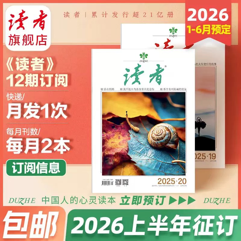 【预售先发赠品】《读者》2026上半年12期订阅 2026年1月-6月 每月中旬更新2期 国民杂志 心灵读本