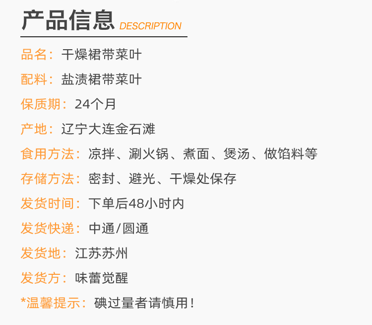 味蕾觉醒 干燥裙带菜叶 无沙免洗 200g/袋