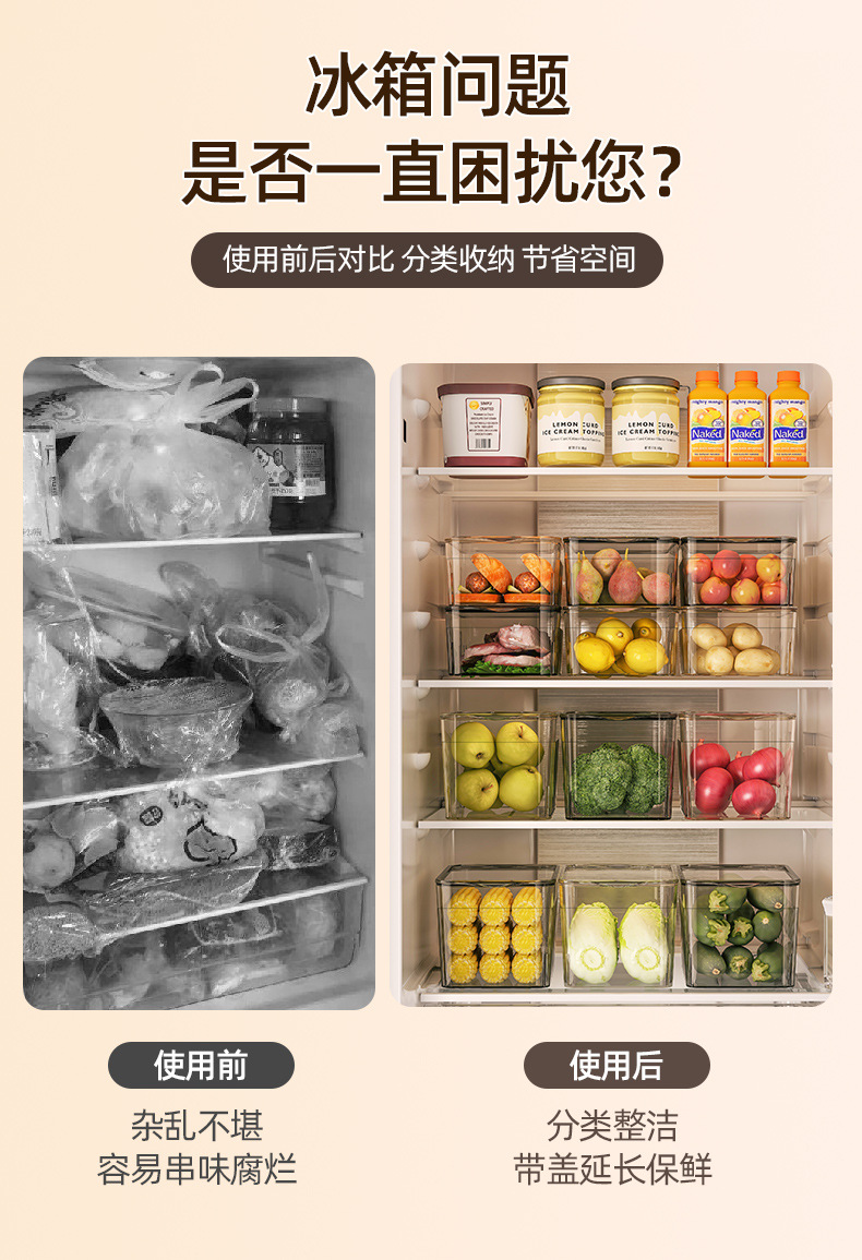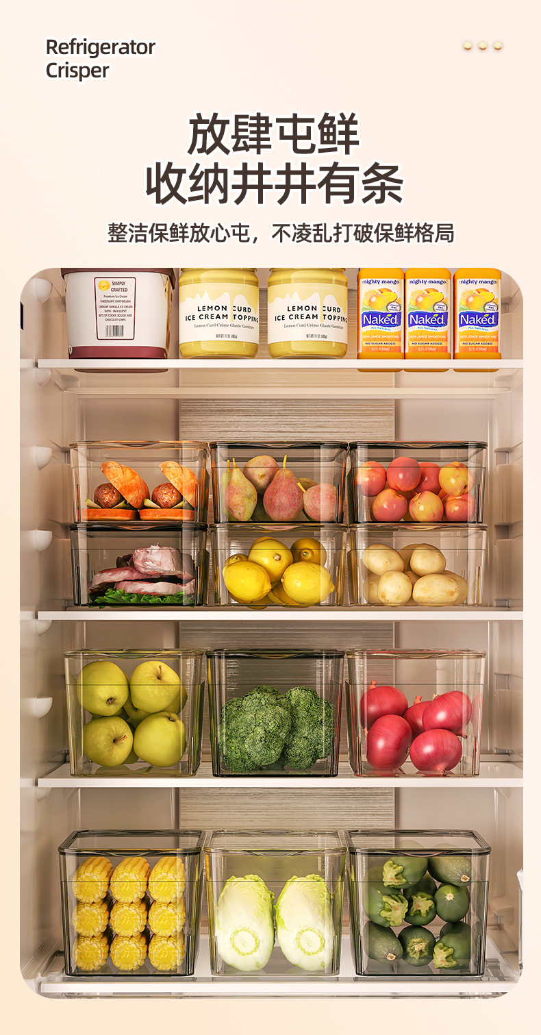 【全新升级,多功能冰箱透明收纳盒】冰箱收纳盒透明特大容量,晶莹剔透新鲜看得见,水果蔬菜收纳井井有条储物盒冷藏冷冻沥水保鲜盒整理盒QQ