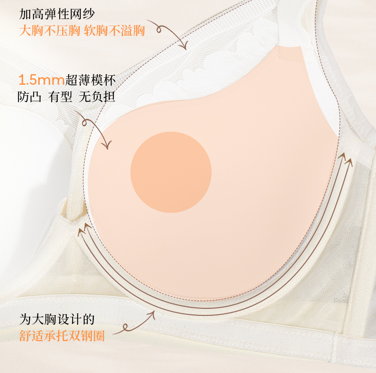 【积分兑换】奶糖派内衣水波纹全罩杯大包裹提拉承托聚拢超薄透气防凸点文胸女