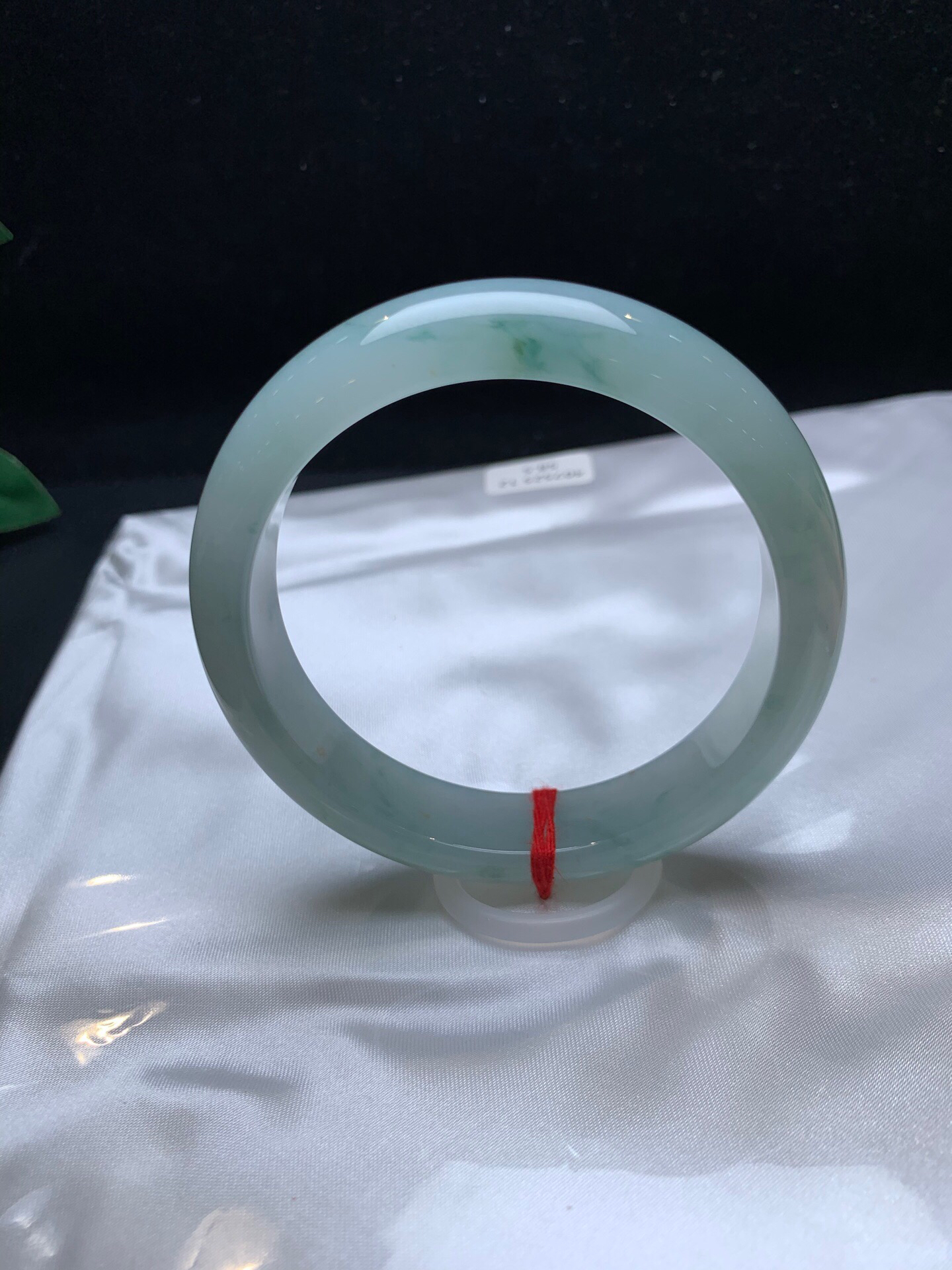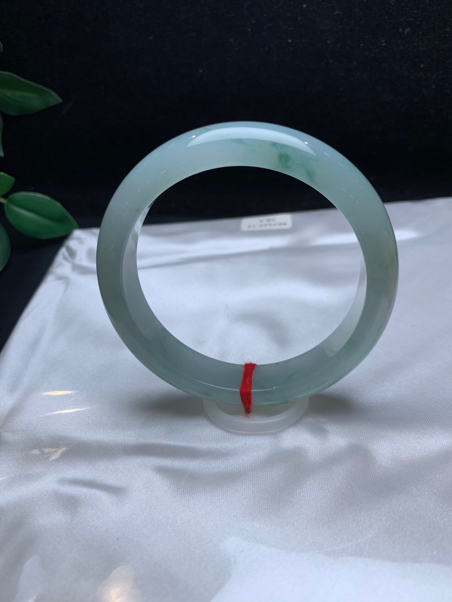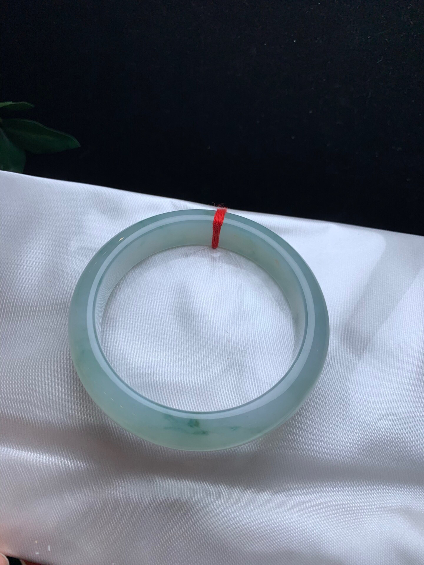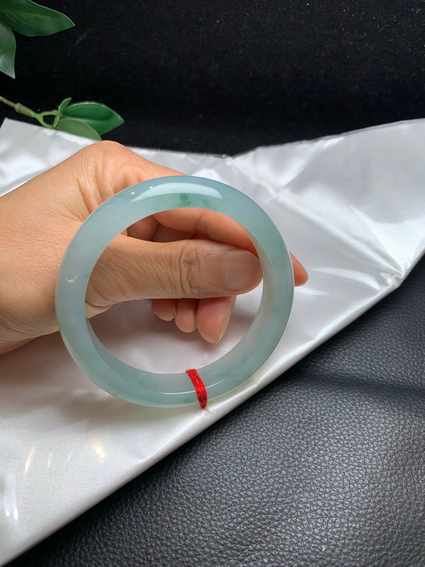 612983,58.5冰飘花手镯,13.9-8.2mm,整条底妆非常细腻干净, 胶胶润润的,飘清新蓝花,清秀完美 ,超值价💰45000 #优石客珠宝#香玉荟萃