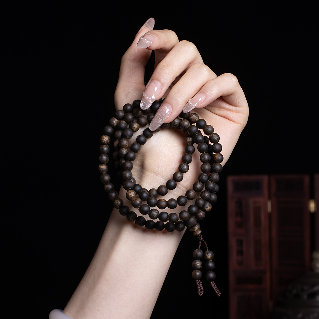 xy0355沉香6.6mm108佛珠沉水级品质,天然沉香,原色原味,满油脂,沉水级的品质,一整条均匀完美,实际为118颗,沉水料不多,香味悠远纯醇,清香扑鼻,非常舒适舒服、减压,安神助眠。