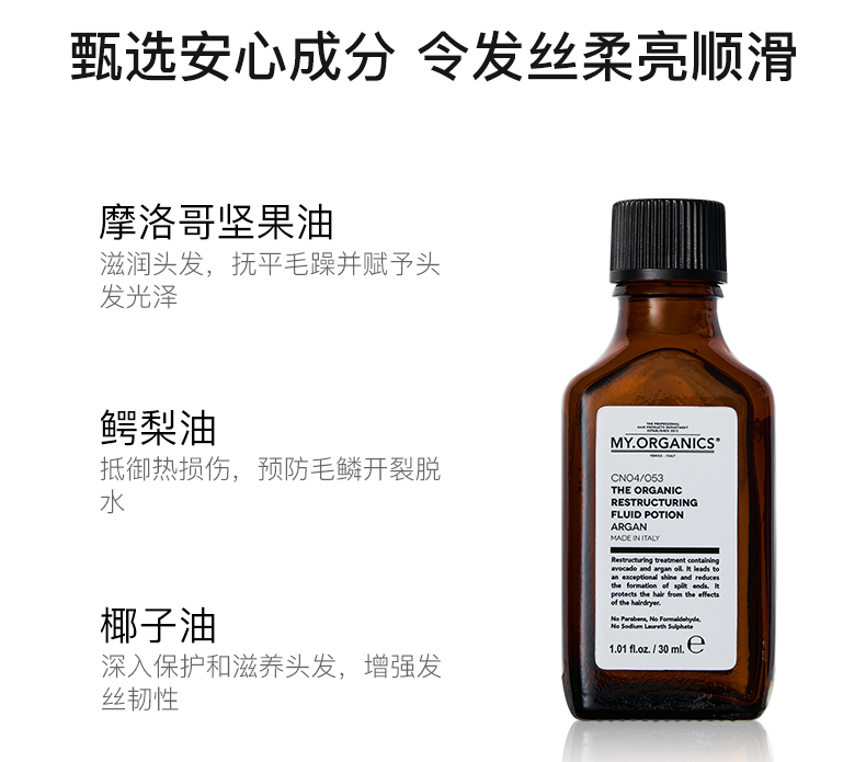 意大利my organics有机摩洛哥坚果油 · 改善毛躁分叉烫染隔热 修复顺滑光泽 头皮精华油护发精油30ml或100ml|保税