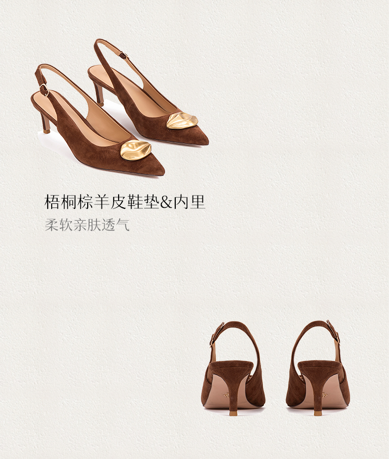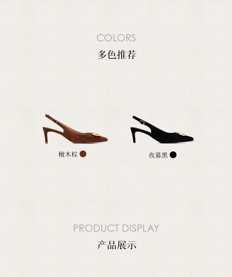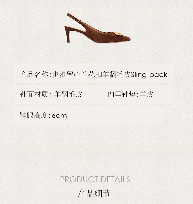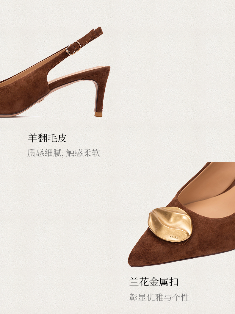 heelz设计师手工鞋履 |步步留心兰花扣羊反绒Sling-back 6公分
