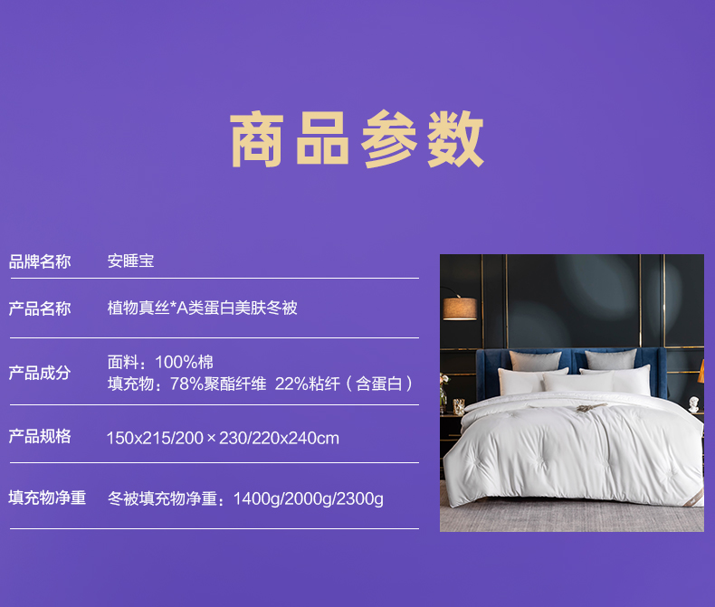 【云粉节】【云粉节】10楼 安睡宝 植物真丝A类蛋白美肤冬被 吊牌价2199-2899元 活动价599-799元