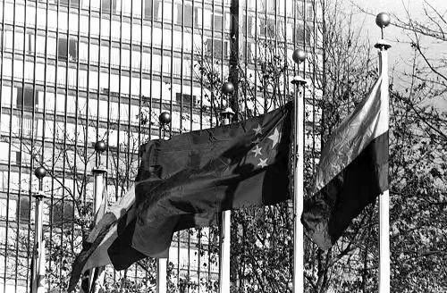 ▲五星红旗第一次在联合国大厦前飘扬