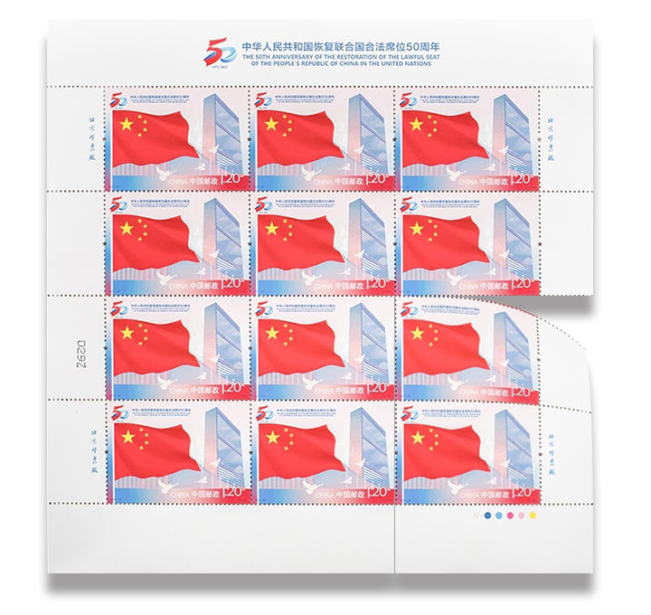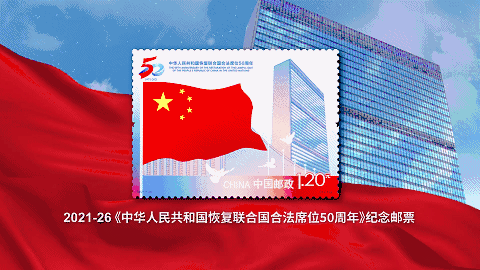 中国邮政定于2021年10月25日发行《中华人民共和国恢复联合国合法席位50周年》纪念邮票1套1枚。