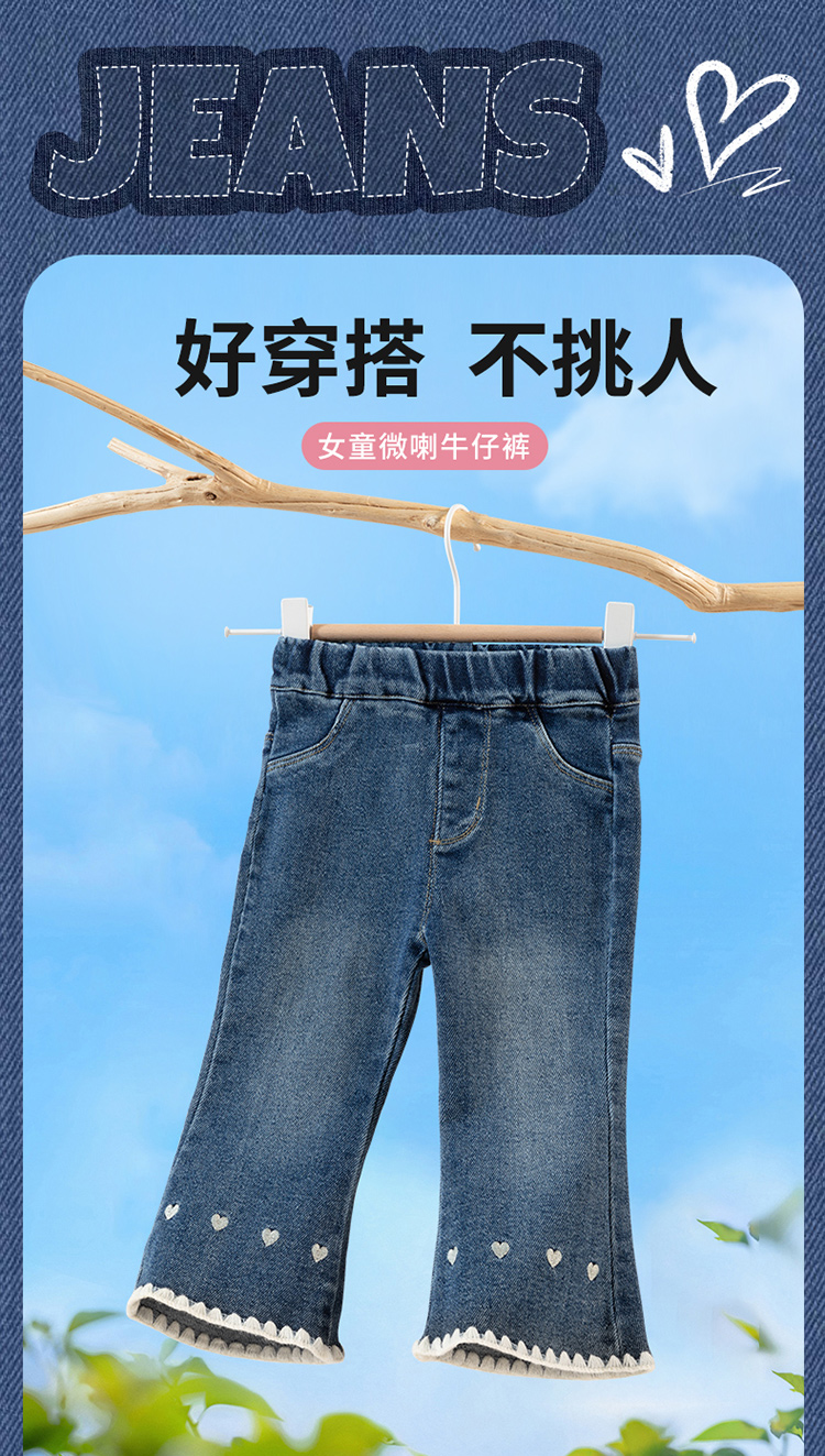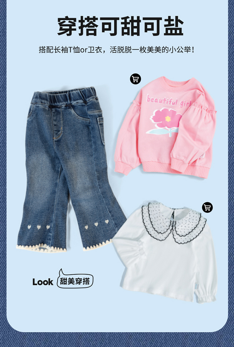 贝贝怡童装儿童春秋季长裤女童休闲洋气潮流百搭牛仔长裤ZB3CK013