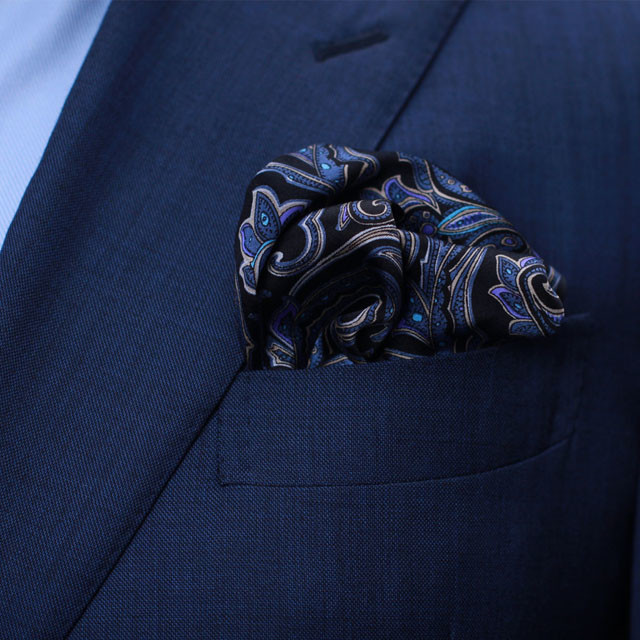 蓝色系双面佩斯利花纹真丝领巾/小围巾