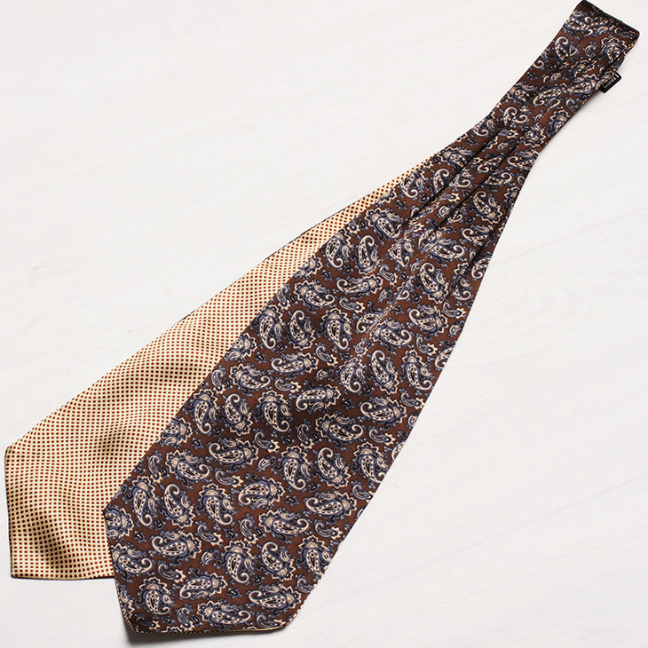 棕色系佩斯利花纹-圆点双面真丝领巾/小围巾
