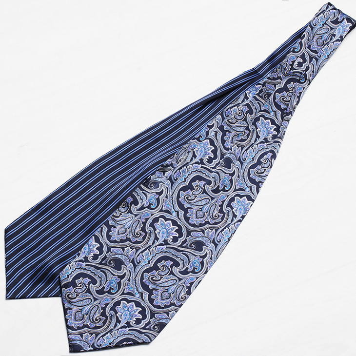 蓝色系佩斯利花纹-条纹双面真丝领巾/小围巾