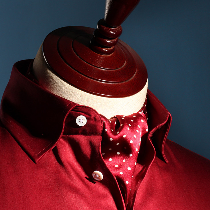 阿斯科特领巾Ascot Tie简单的打法就是下面这种,搭配礼服和翼领衬衫的时候好用领带针将其固定。
