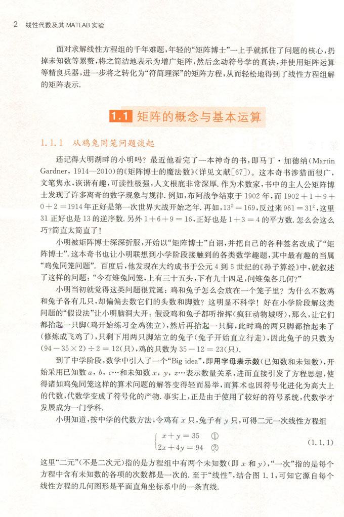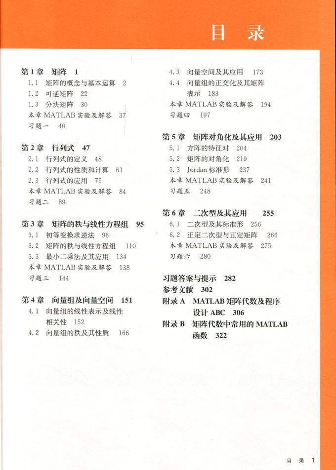 本书包括矩阵与行列式、矩阵的秩与线性方程组、向量空间与线性空间、矩阵的特征值、矩阵与二次型、Matlab入门等内容,主要介绍了线性代数的基本理论和计算方法。书中秉持“淡化形式注重实质”的理念,注意突出线性代数的本质思想,同时淡化复杂的理论证明。鉴于线性代数计算的繁琐及其与Matlab软件的密切联系,书中给出了大量的Matlab软件代码,以便读者模仿和借鉴。