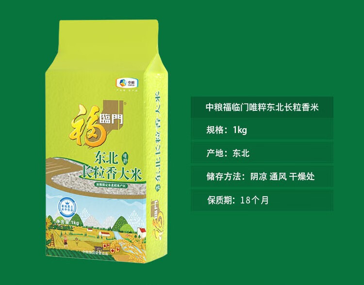 中粮福临门唯粹东北长粒香米1kg/袋【CZ】
