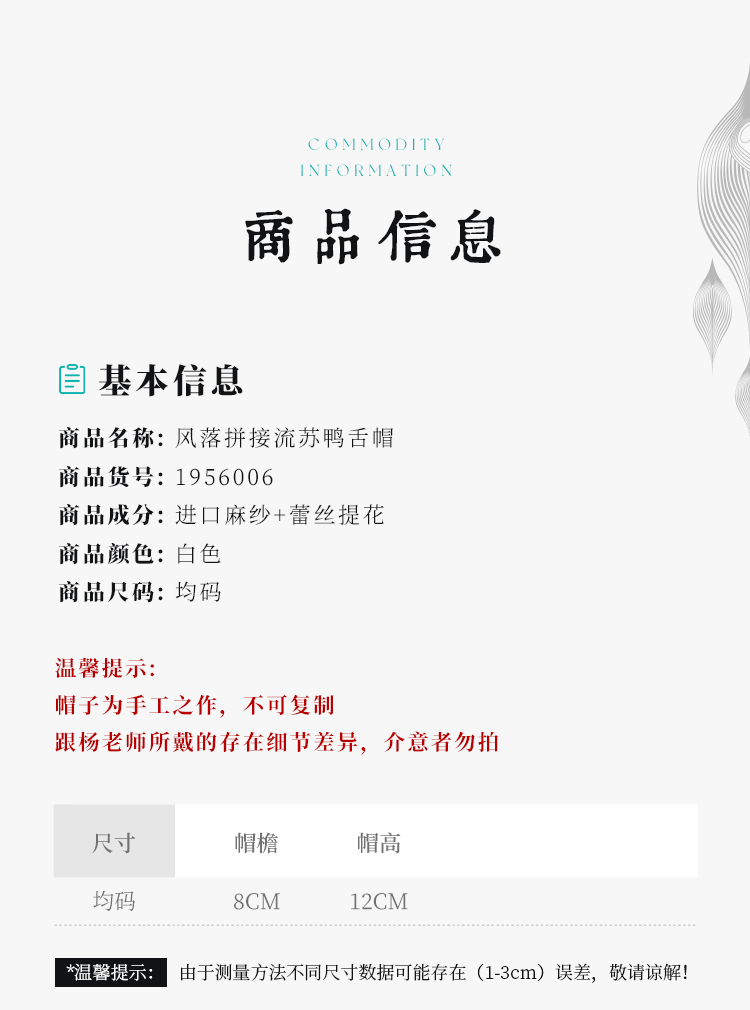 风落鸭舌帽 | 个性化设计 | 手工制作 | 现货加急发