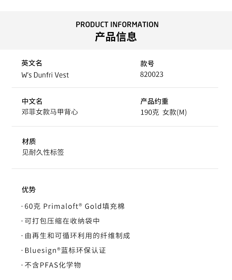 HOUDINI胡丁尼 Dunfri Vest 邓菲户外女秋冬轻便保暖防风棉马甲背心 820023