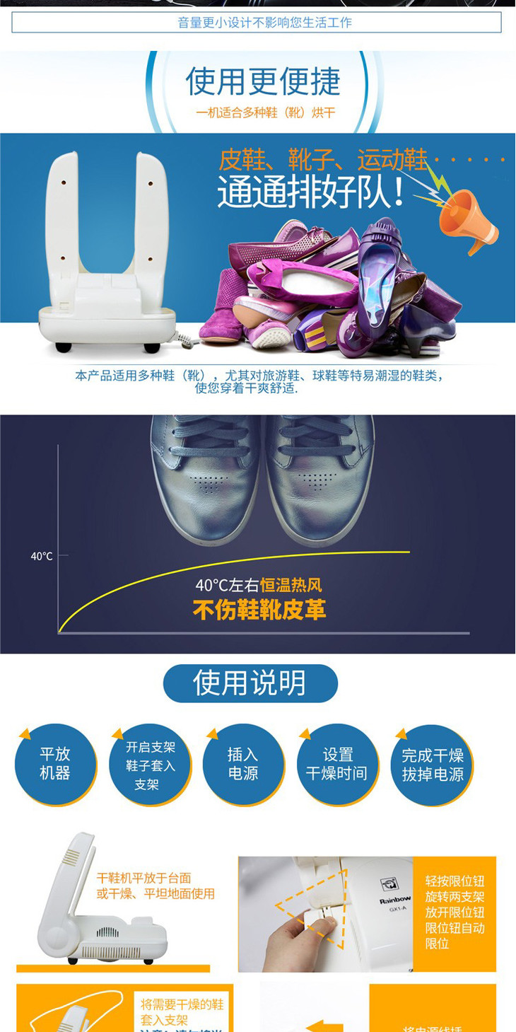 彩虹烘鞋器 定时电热暖风干鞋机481-2 可折叠干鞋器