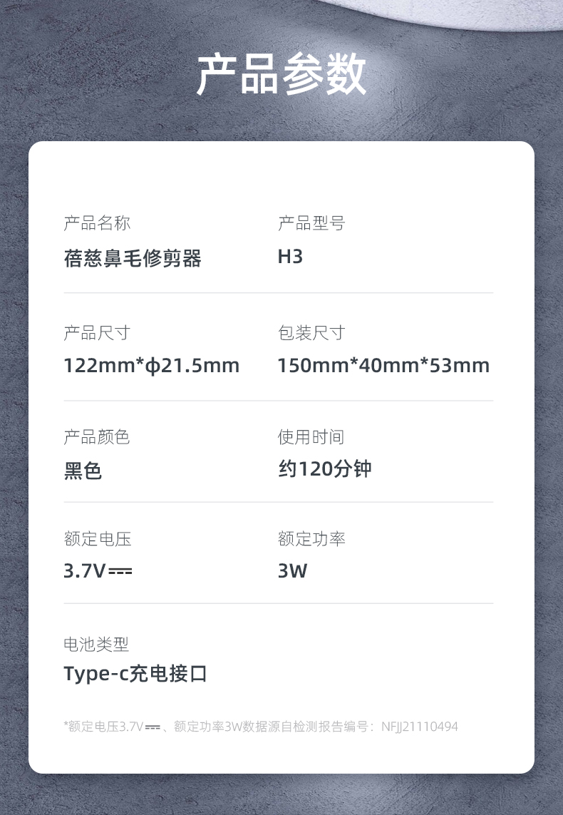 蓓慈H3鼻毛修剪器分离拆卸刀头方便防水清洁滑动推式