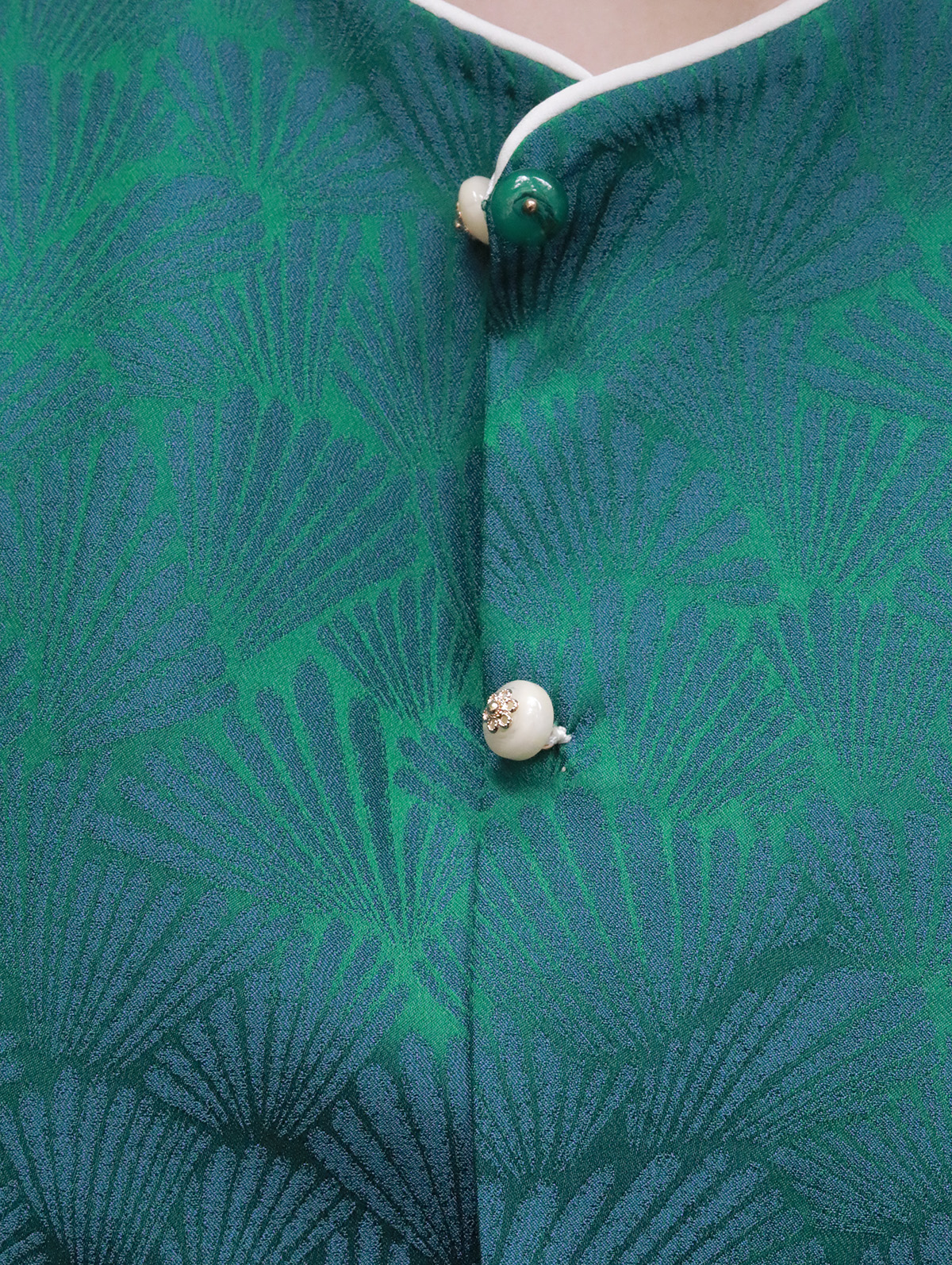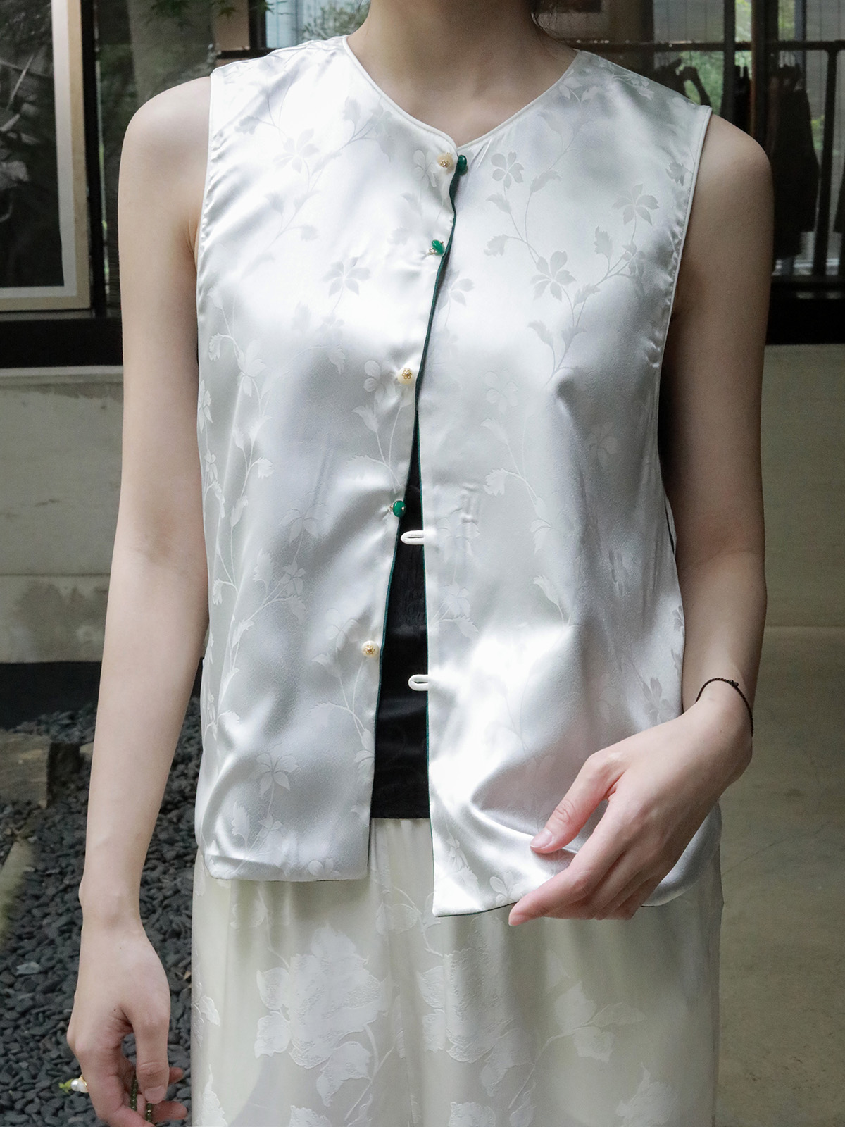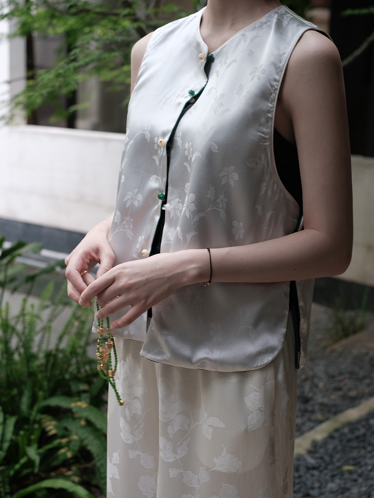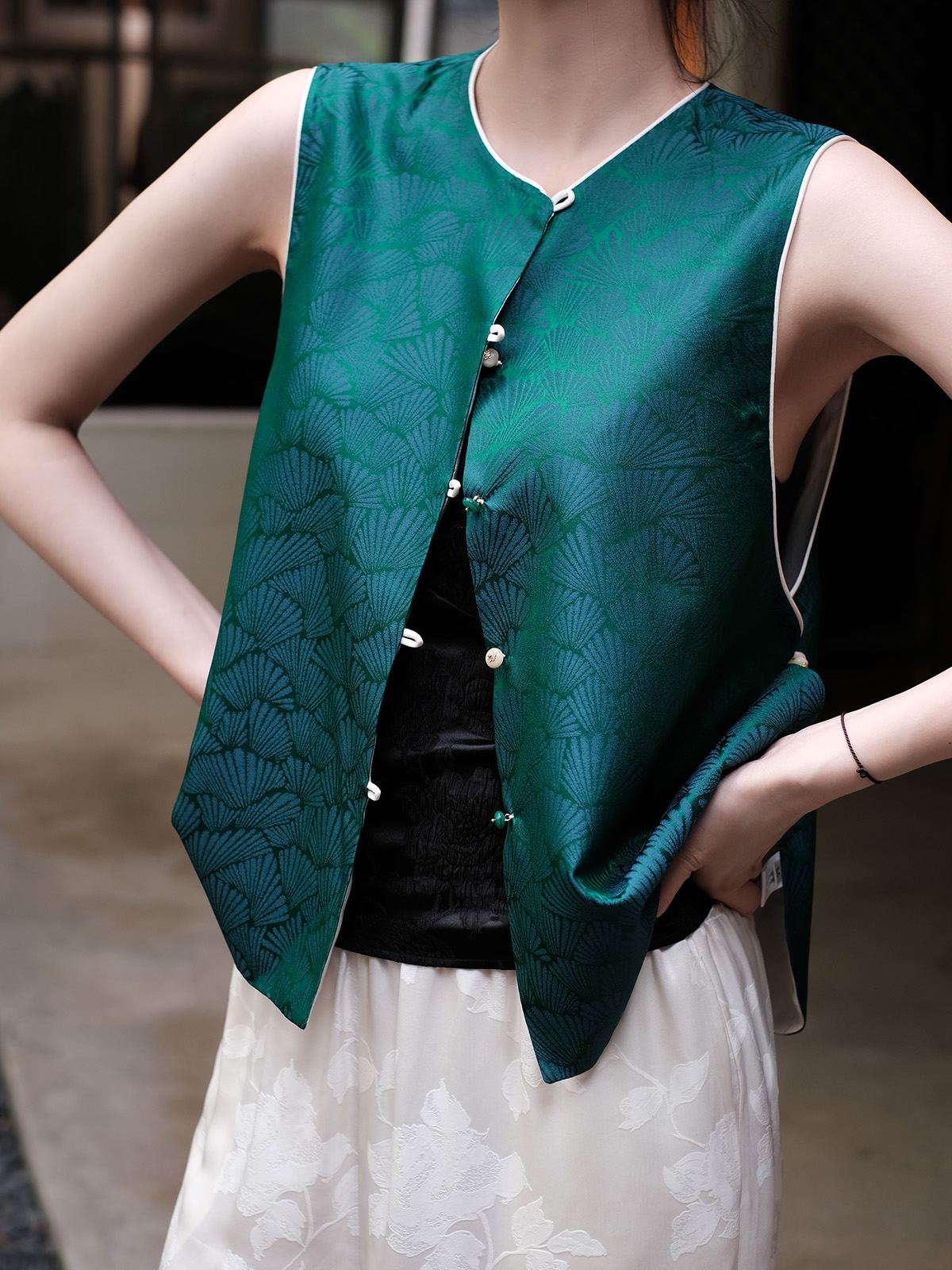 盛唐婧 |提花真丝缎双面穿对襟马甲-绿色