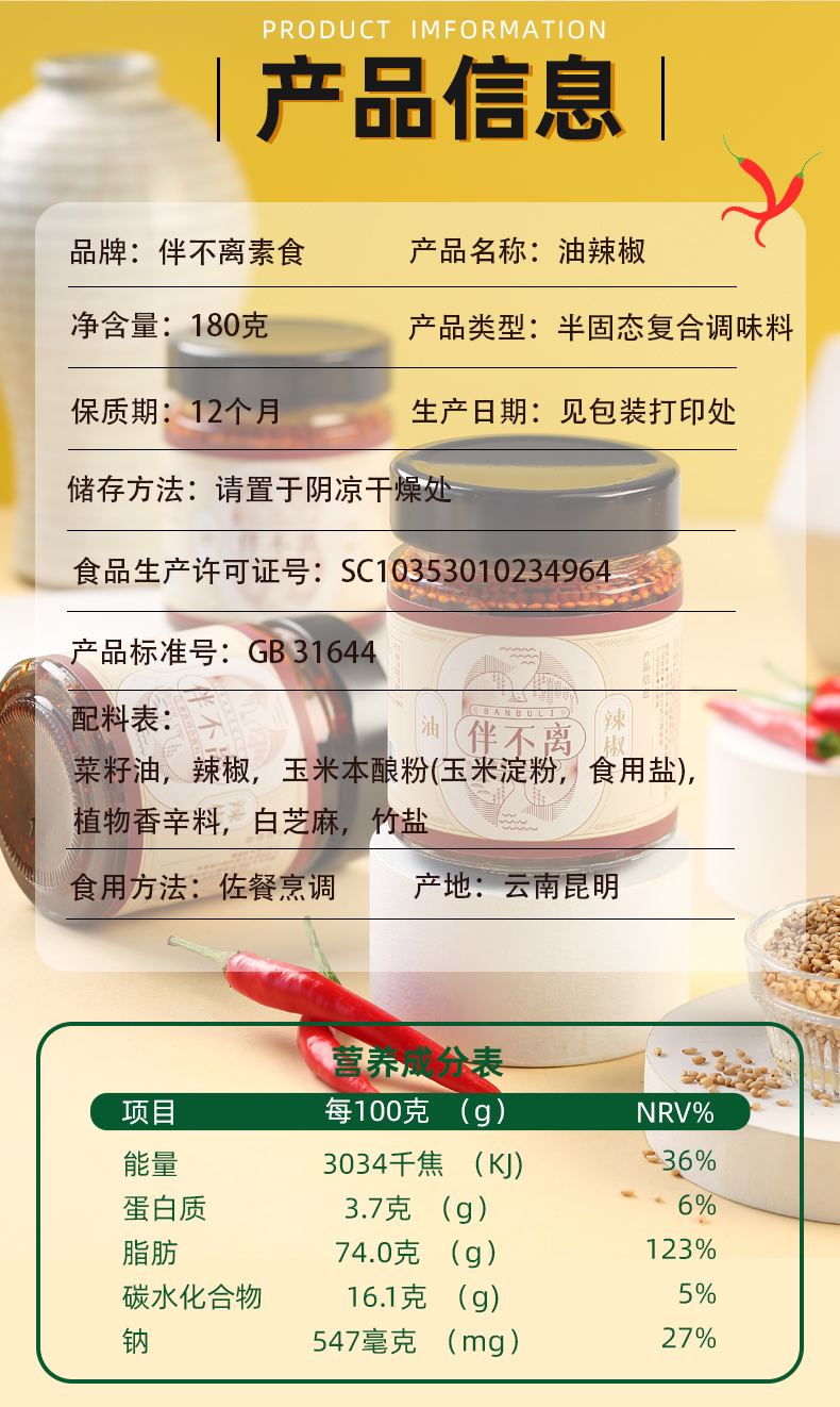 伴不离 油辣椒 油泼辣子辣椒油 180g/瓶