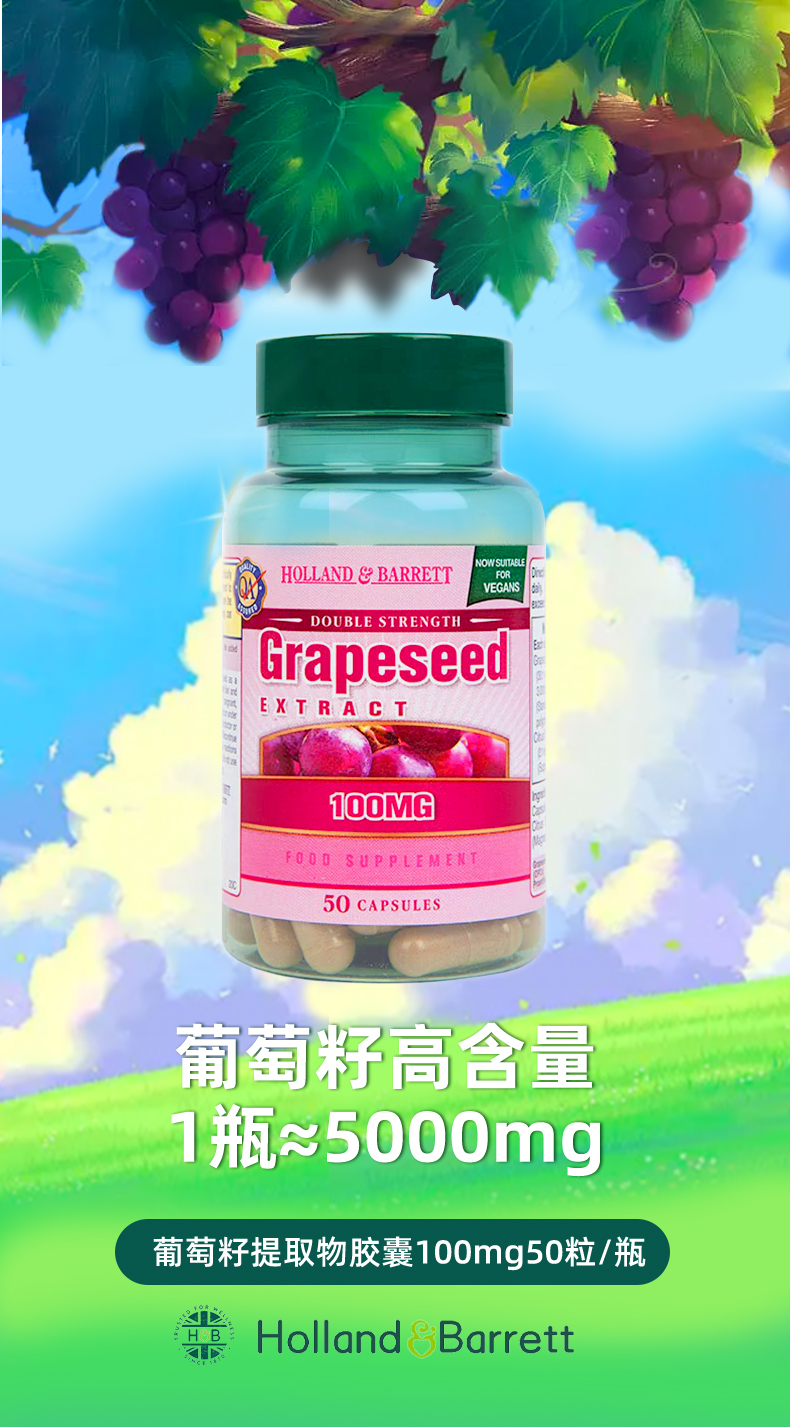 【一口价】英国HOLLAND&BARRETT荷柏瑞葡萄籽提取物精华胶囊