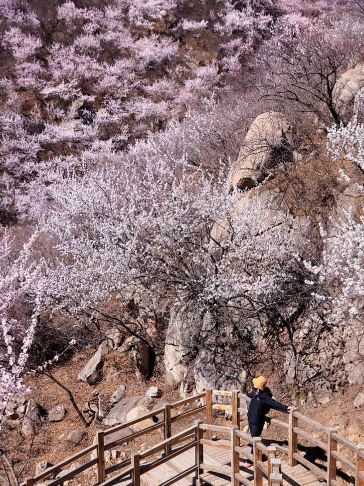 除桃花外,徒步过程中还能看到杏树、栗子树等各类植被。当踏上木栈道,仿佛走进 “松涛林海”,微风拂过,松树沙沙作响,松香悠悠,令人心旷神怡。