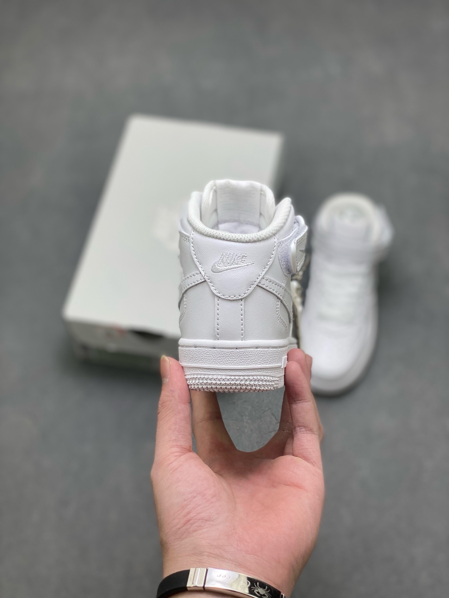全白中帮童鞋 原楦头原纸板 打造纯正空军版型 专注外贸渠道 全掌内置蜂窝气垫 原盒配件 原厂中底钢印、拉帮完美