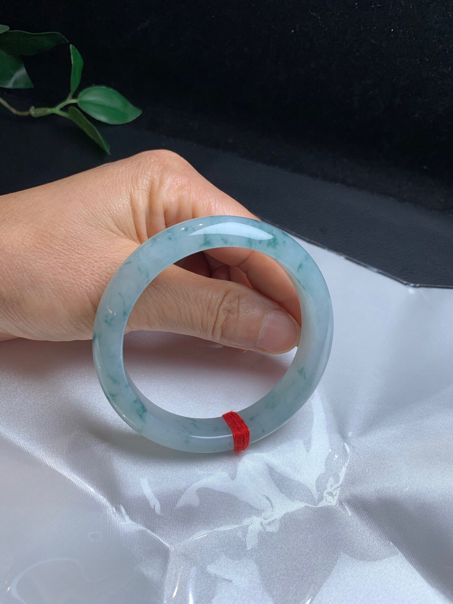 620039,56.8冰飘花手镯,12-8.2mm ,整体清新干净,飘淡雅蓝花,干净清爽 完美。超值价💰28600 #优石客珠宝#香玉荟萃