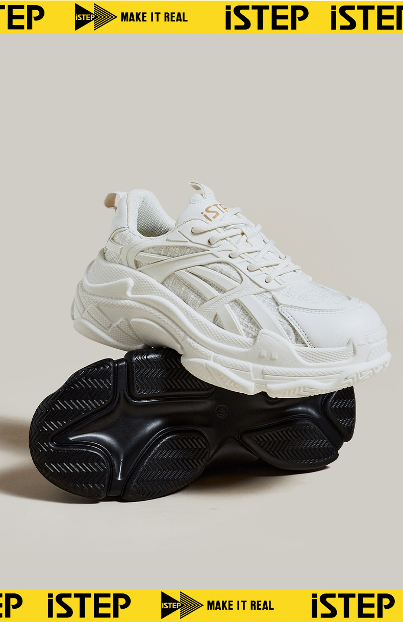 iSTEP女士老爹鞋厚底增高日常休闲女鞋复古做旧透气运动女鞋