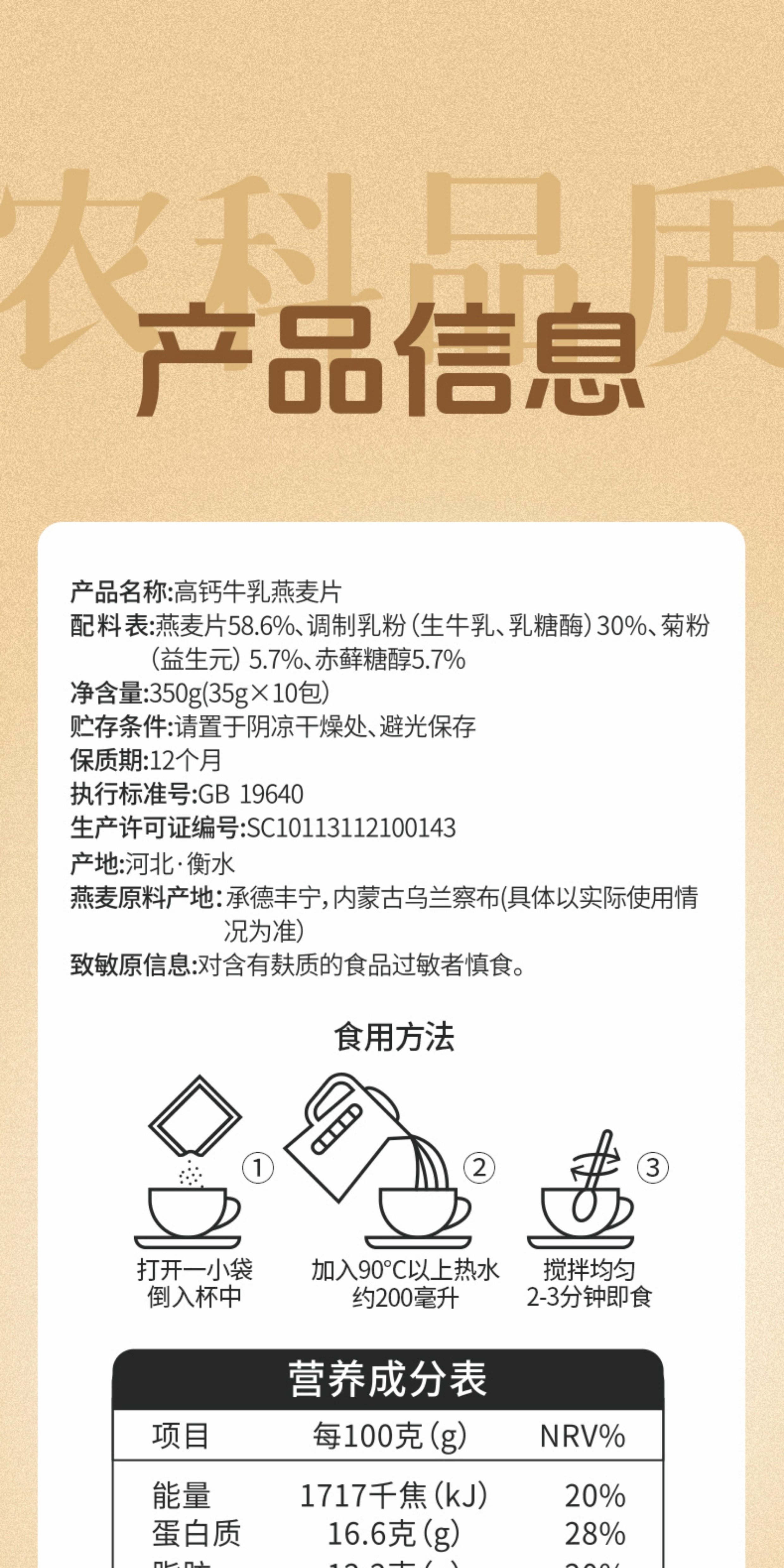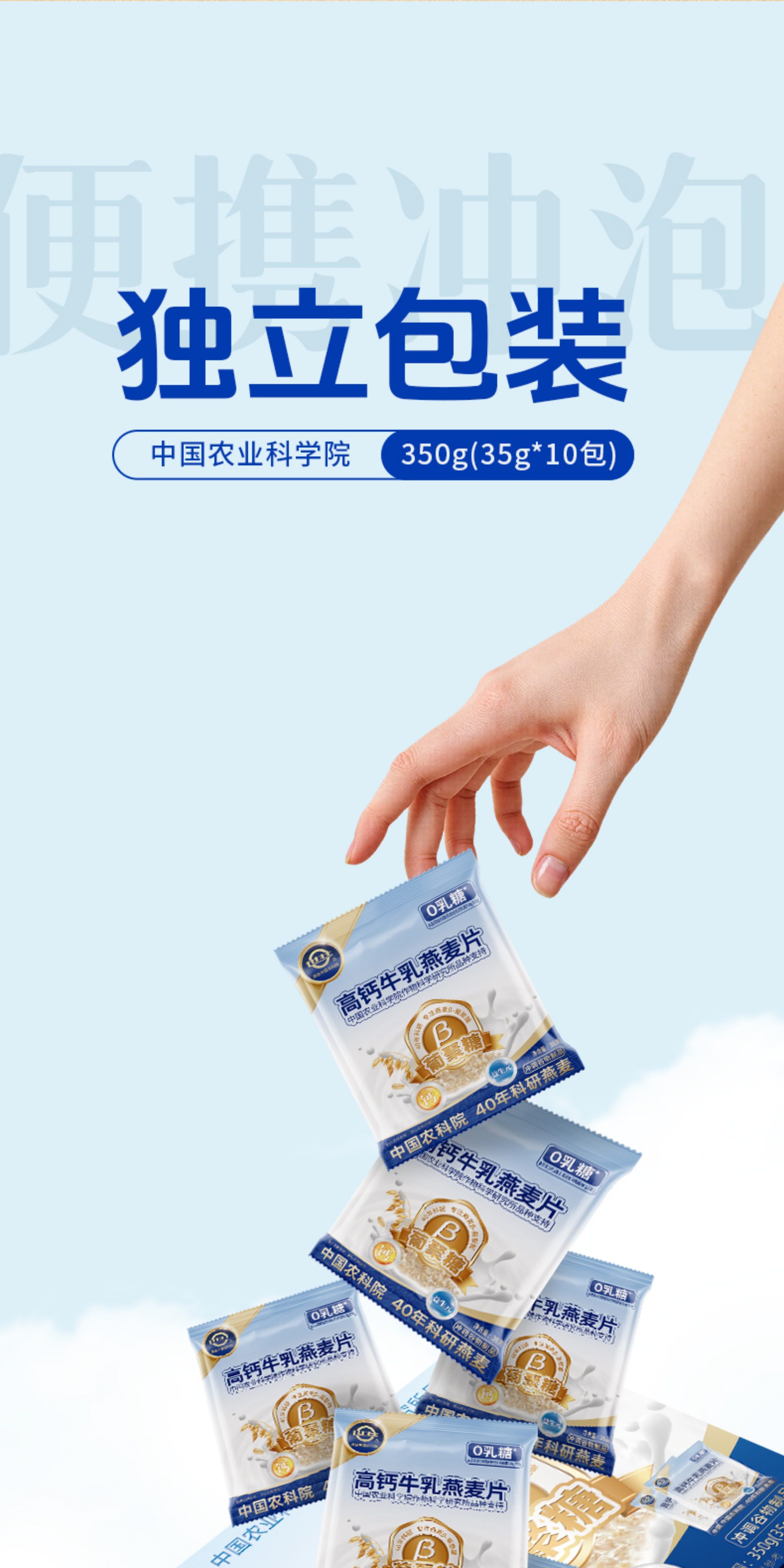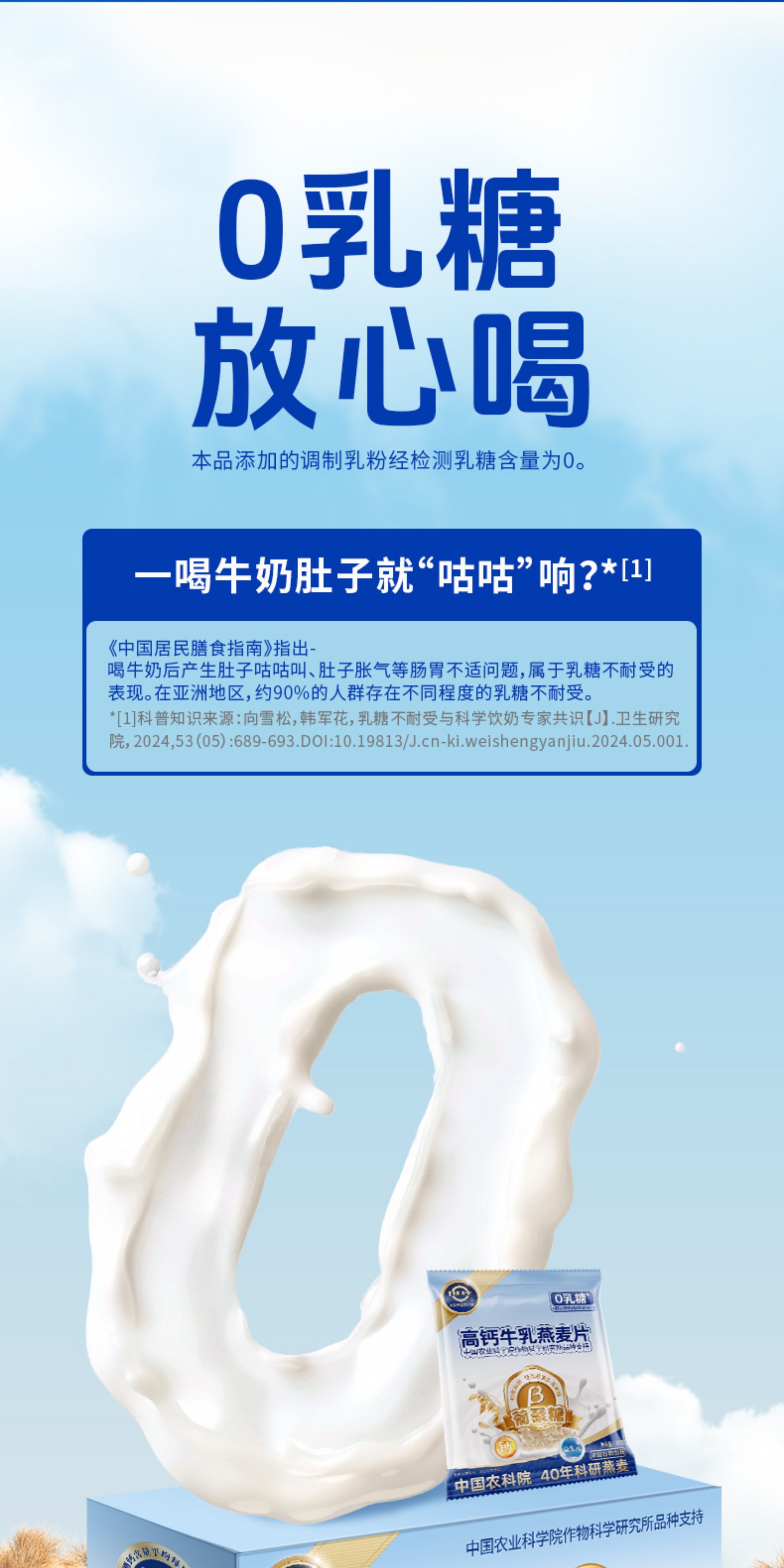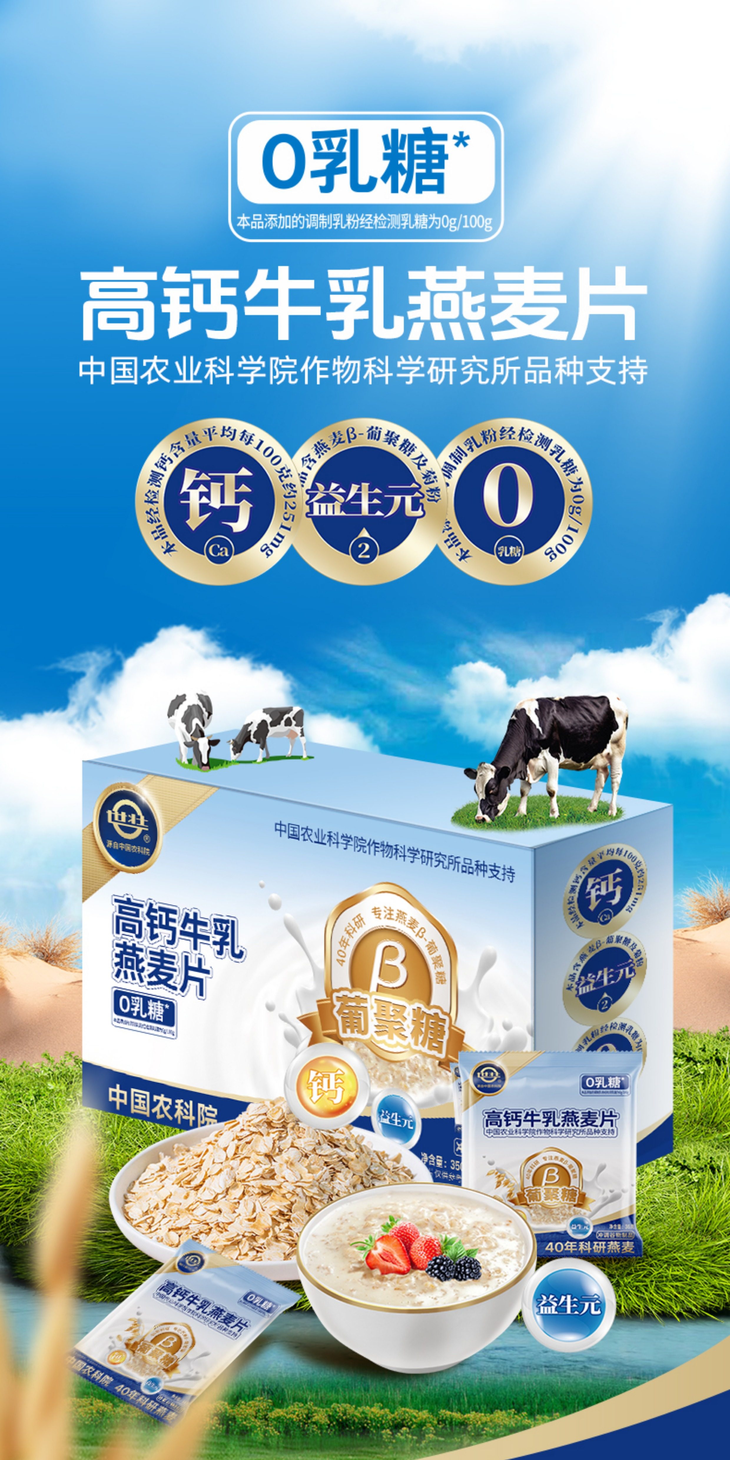 中国农科院高钙牛乳燕麦片热饮即食牛奶燕麦营养健康早餐速溶麦片