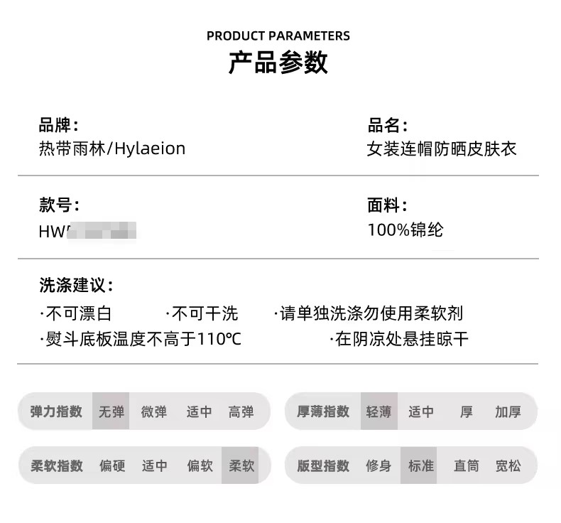 Hylaeion热带雨林户外轻薄连帽印花防晒皮肤衣HW8131090