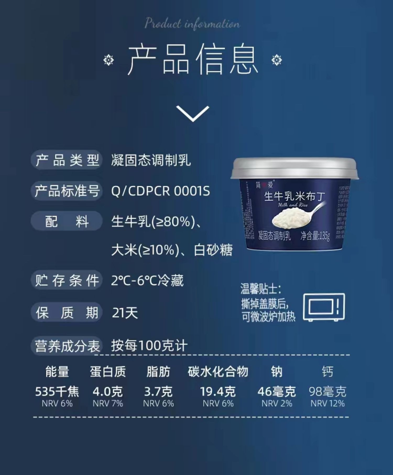135g简爱米布丁 低温鲜牛乳甜宝宝零食