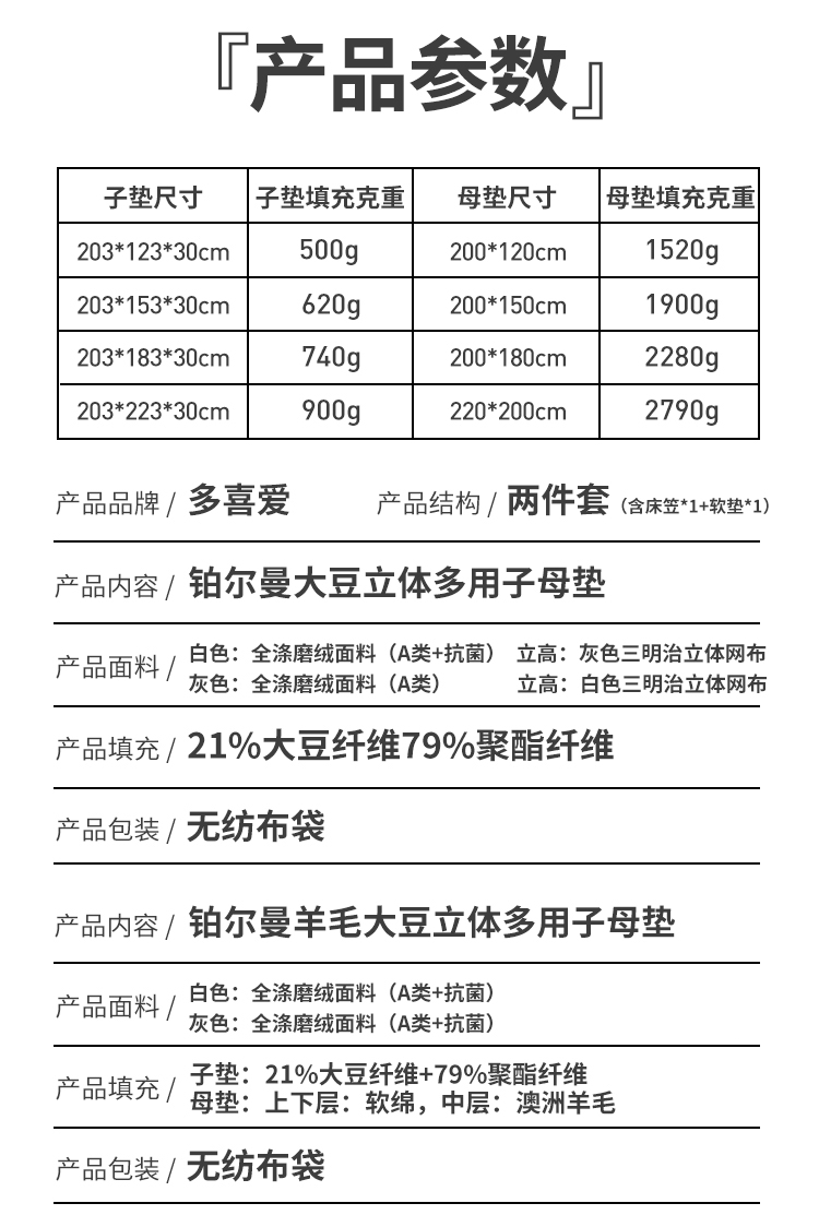 多喜爱 铂尔曼立体多用子母垫(白/灰)/FXcs