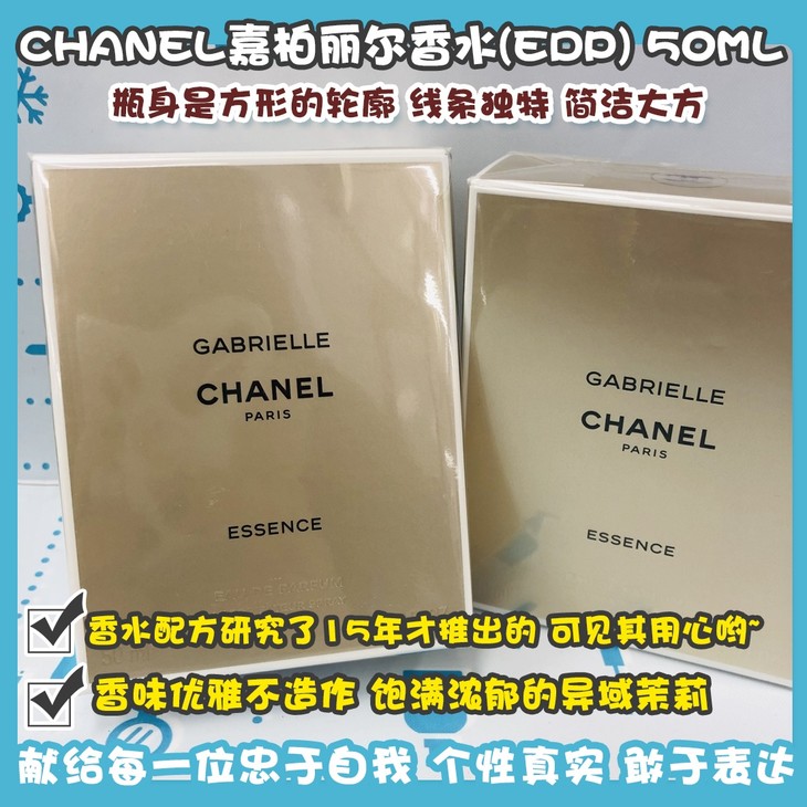 CHANEL嘉柏麗爾香水精粹版(EDP) 👍瓶身是方形的轮廓,线条独特,简洁大方。👂听说这款香水的瓶子设计了5年,香水配方研究了15年才推出的,可见其用心哟~💕香味优雅不造作,饱满浓郁的异域茉莉、果香明媚的依兰🌱、晶莹清新的橙花、细腻柔美的格拉斯晚香玉,勾勒出全然纯粹的花香调🌸。以嘉柏丽尔·香奈儿为灵感,献给每一位忠于自我、个性真实、敢于表达,自带光芒的女性。💃