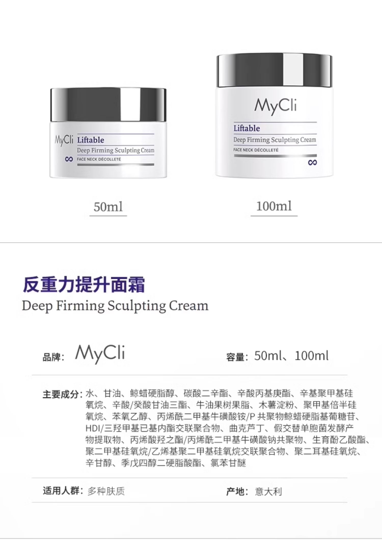 MyClI保湿面霜塑颜紧致抗皱反重力提升淡纹女生滋润提拉50ml