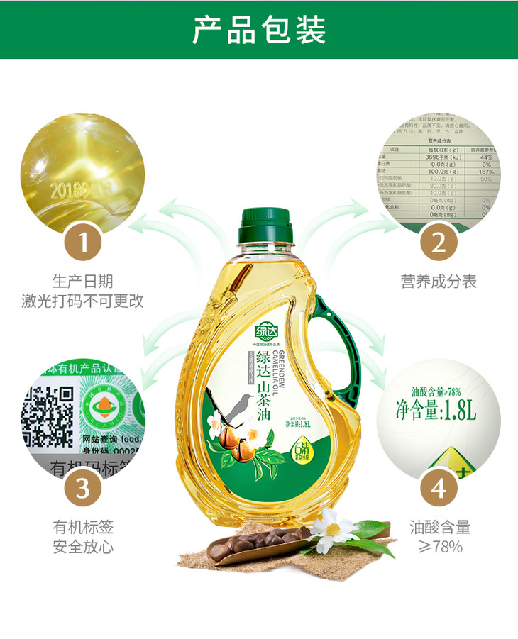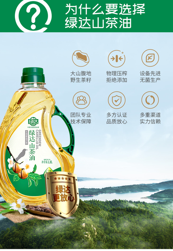 厂家直发-绿达6清新品冷榨山茶油1.8L家庭装